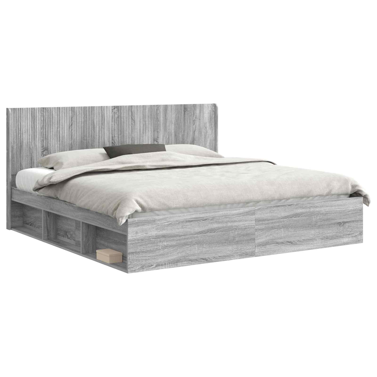 Sängynrunko säilytyksellä ja päänäytöllä Harmaa Sonoma