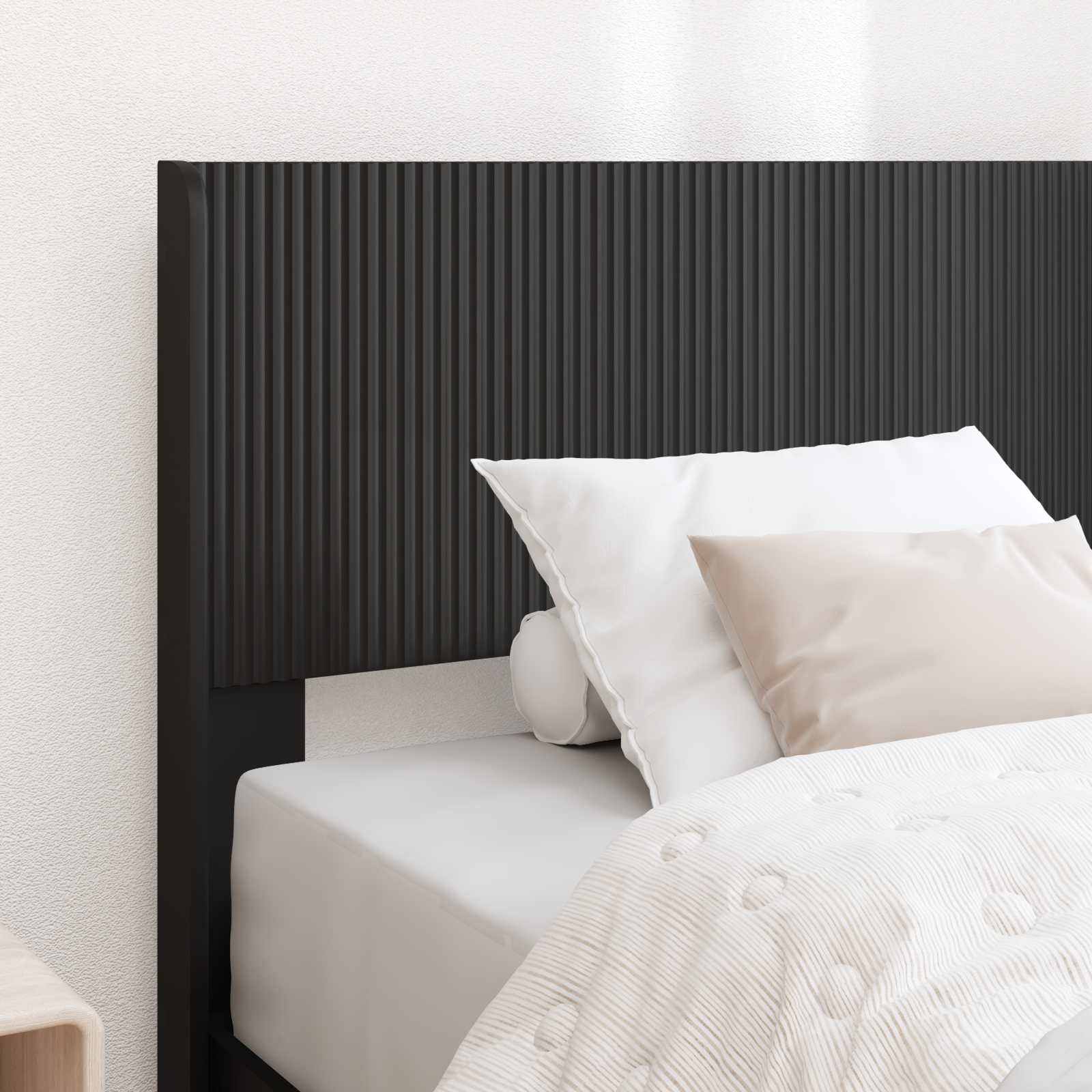 • Tekninen puumateriaali: Tässä sängyssä on kestävä teknisestä puusta valmistettu runko, joka säästää tilaa ja takaa tyylikkään ulkonäön. Tämä materiaali pidentää käyttöikää ja tekee siitä luotettavan valinnan nykyaikaiseen makuuhuoneeseen.