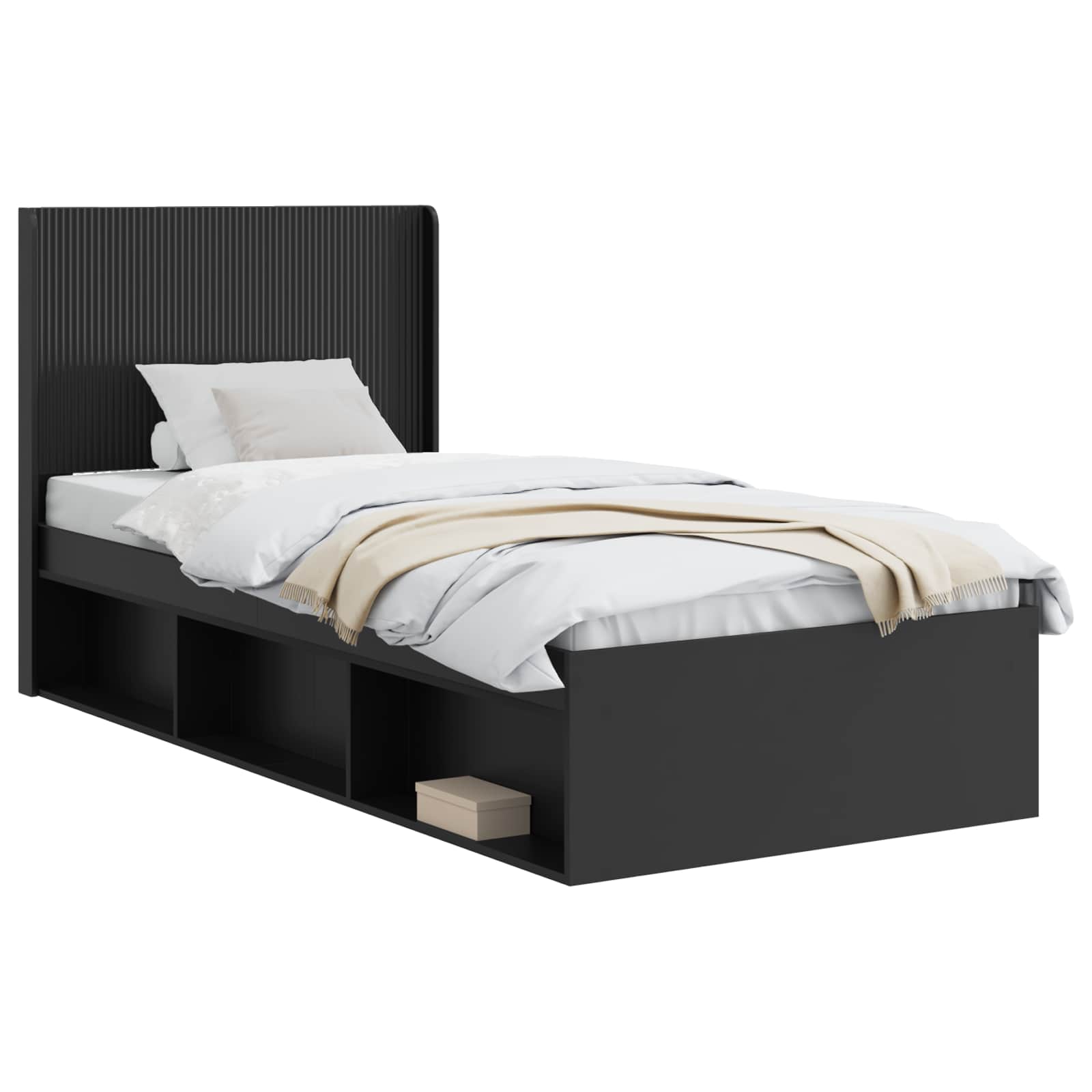 Sängynrunko säilytyksellä ja päänäytöllä Musta 100 x 200 cm