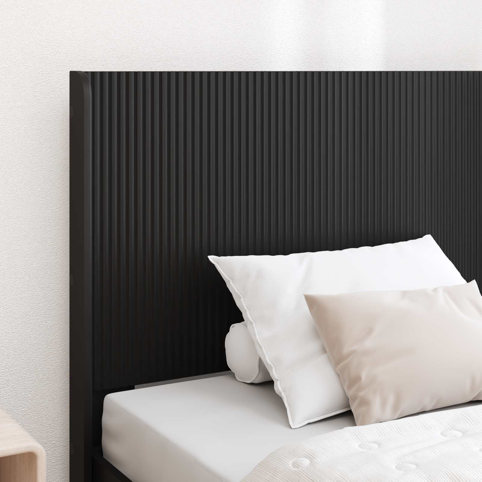 • Moderni minimalistinen muotoilu: Puhtaat linjat ja sulavalinjainen siluetti tuovat modernia tyyliä makuuhuoneeseen. Yksinkertainen muotoilu luo rauhallisen tunnelman nukkumistilaan.