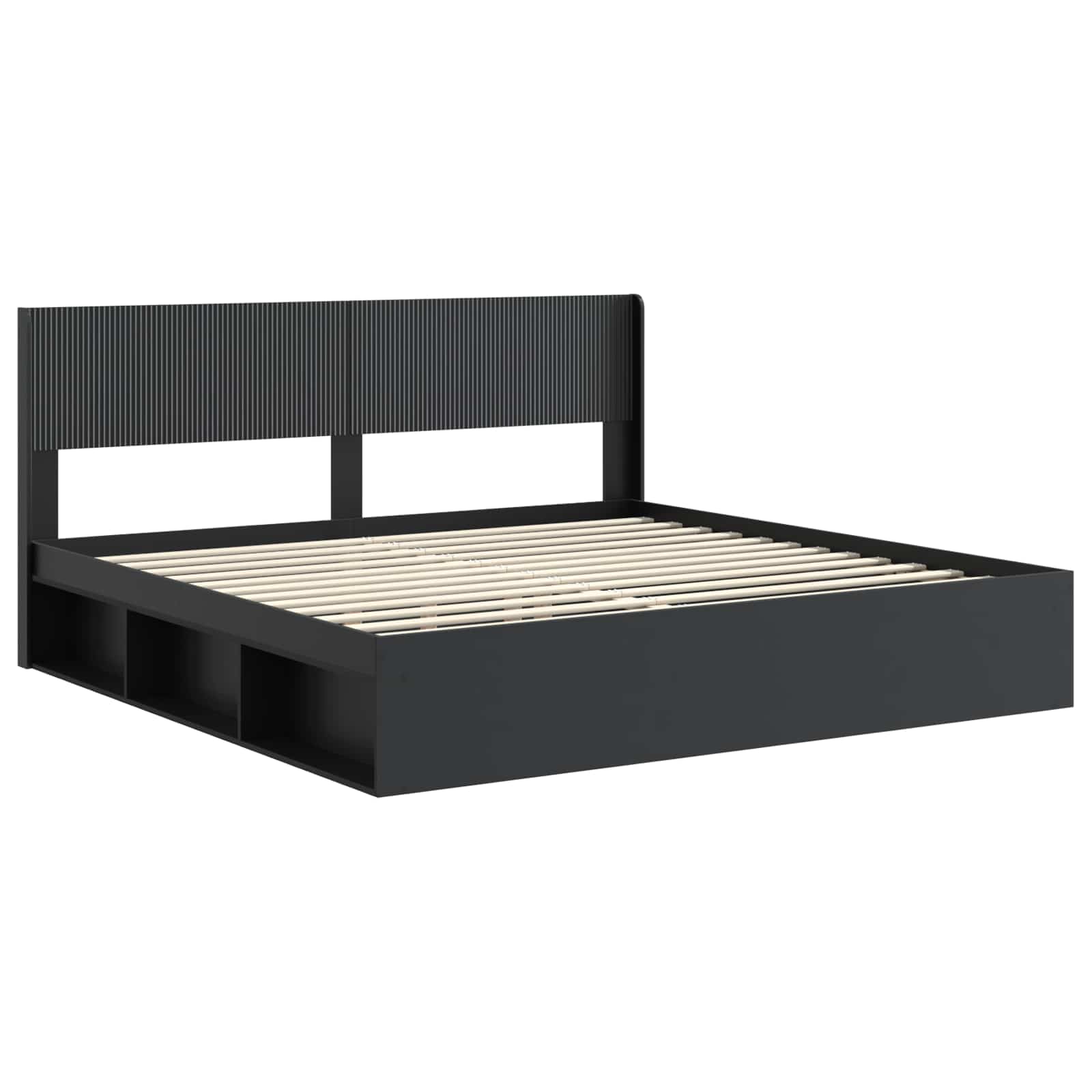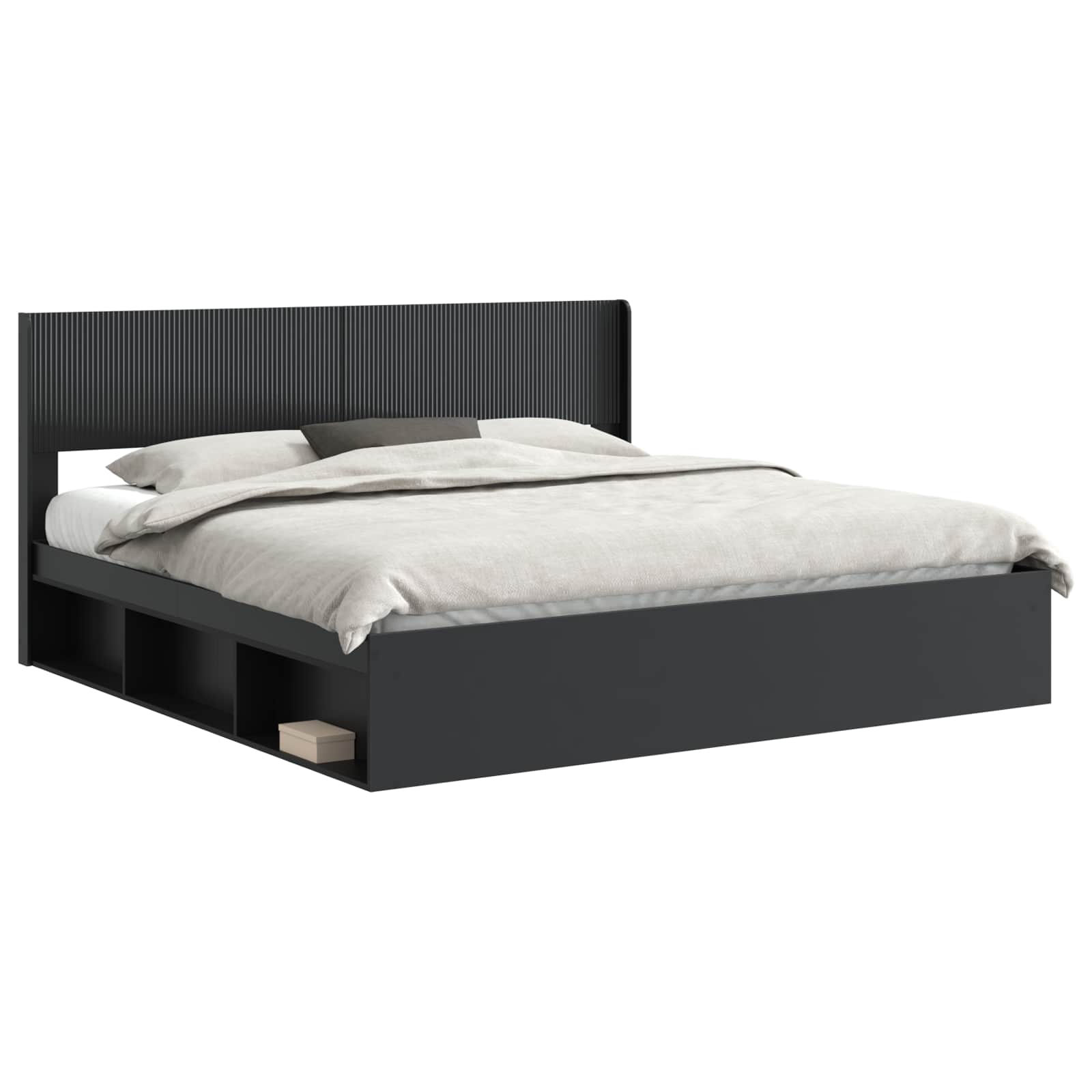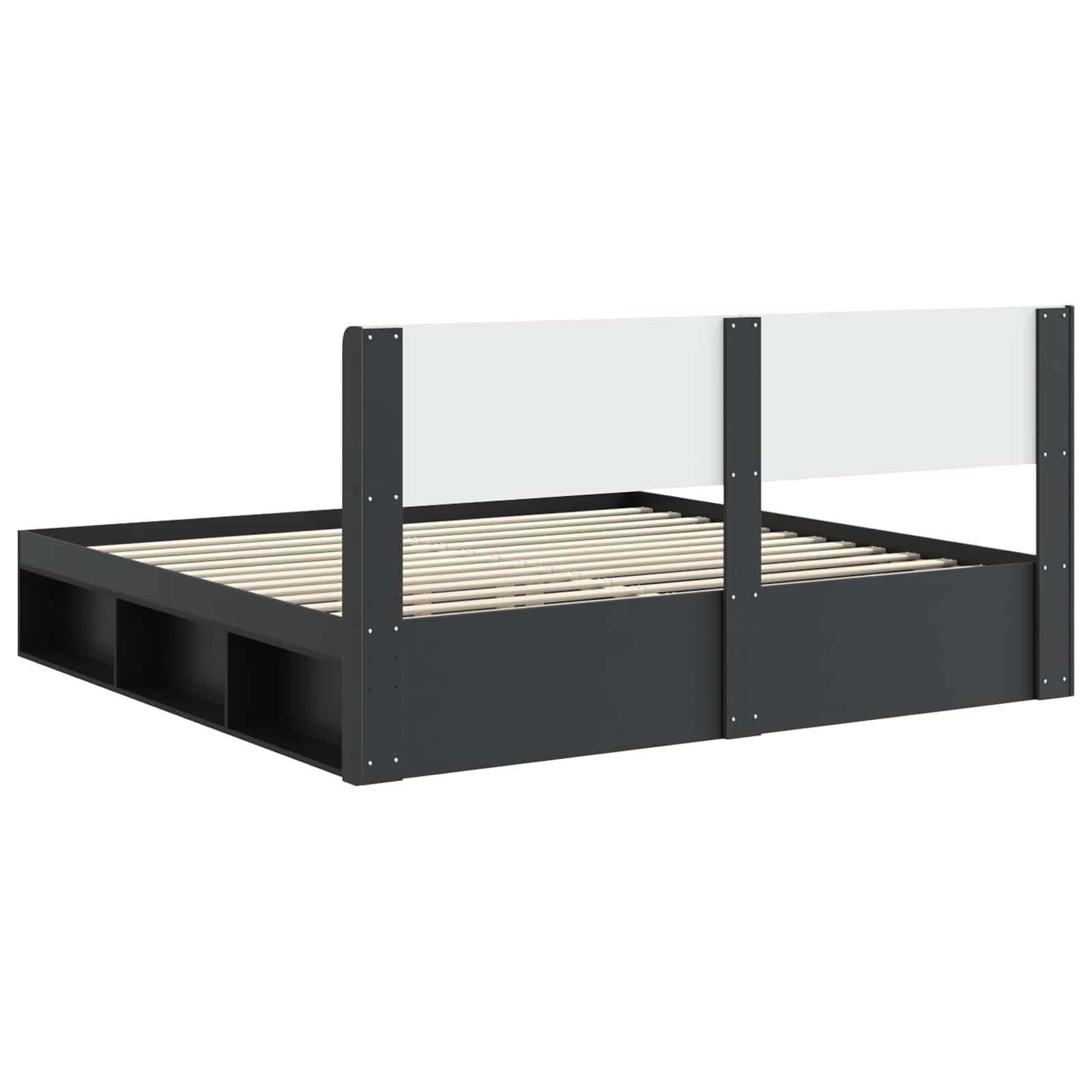 Sängynrunko säilytyksellä ja päänäytöllä Musta