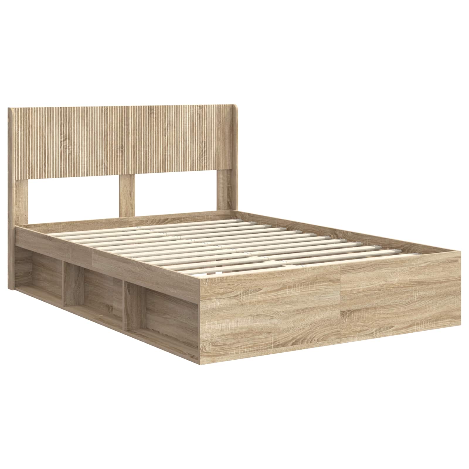 Sängynrunko säilytyksellä ja päänäytöllä Sonoma-tammi