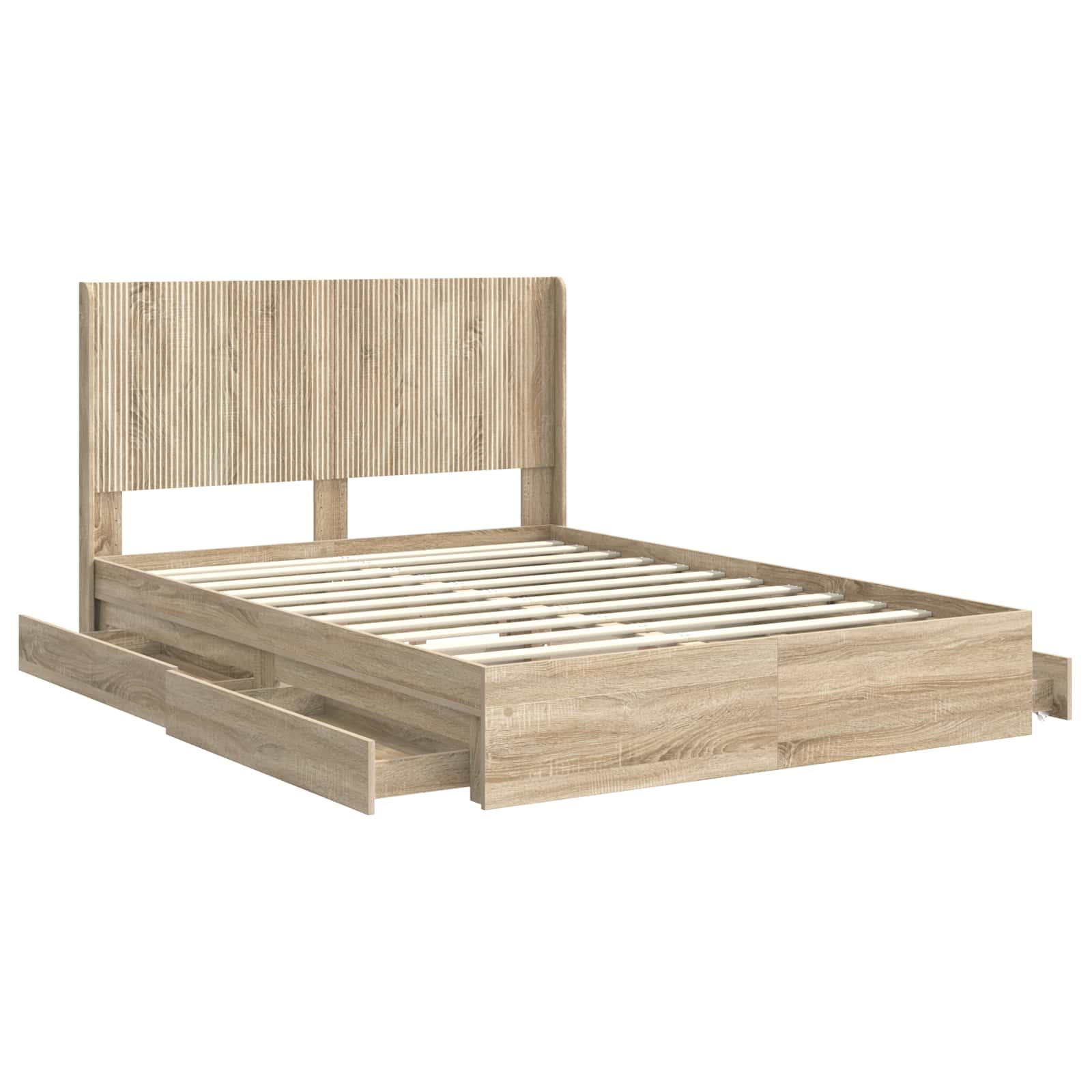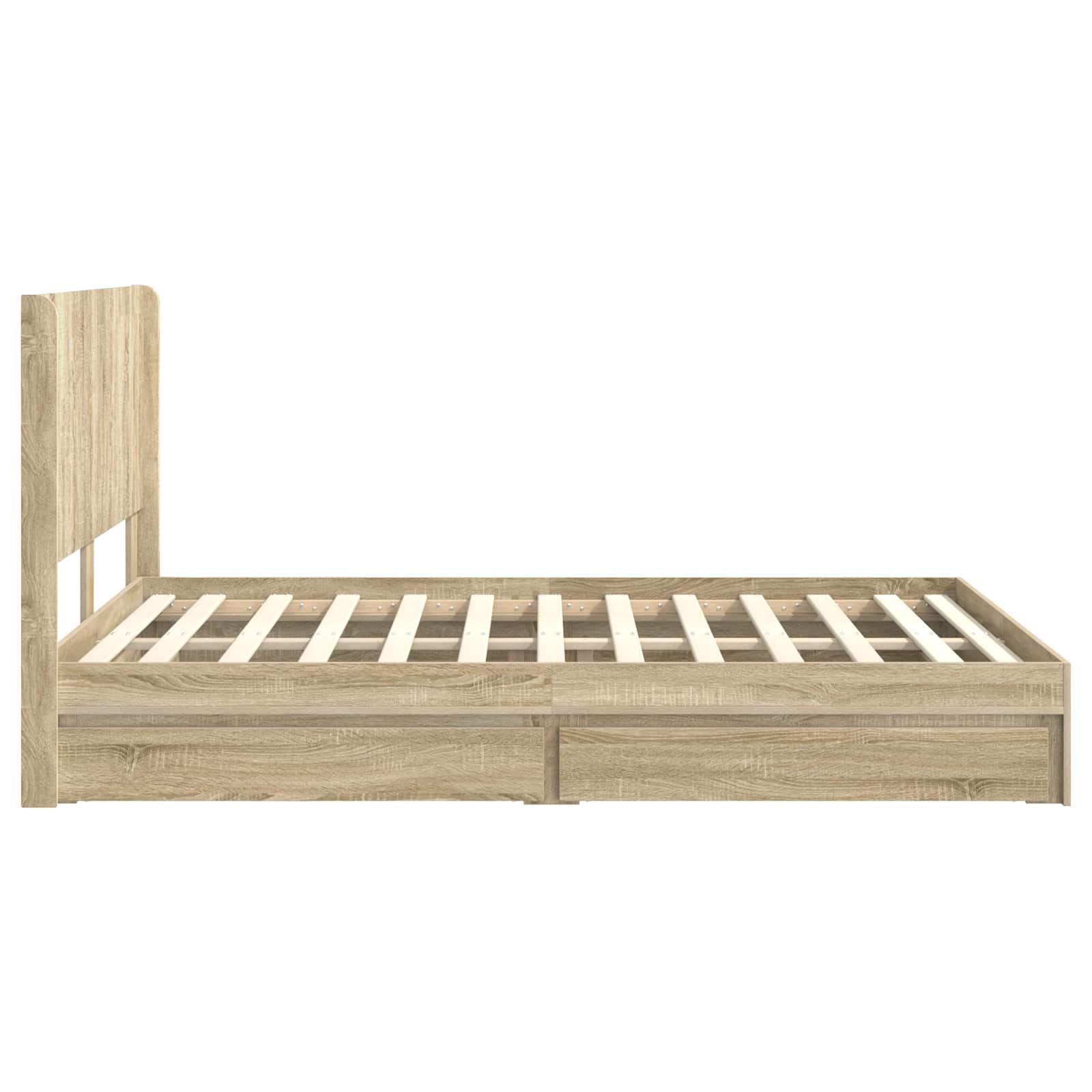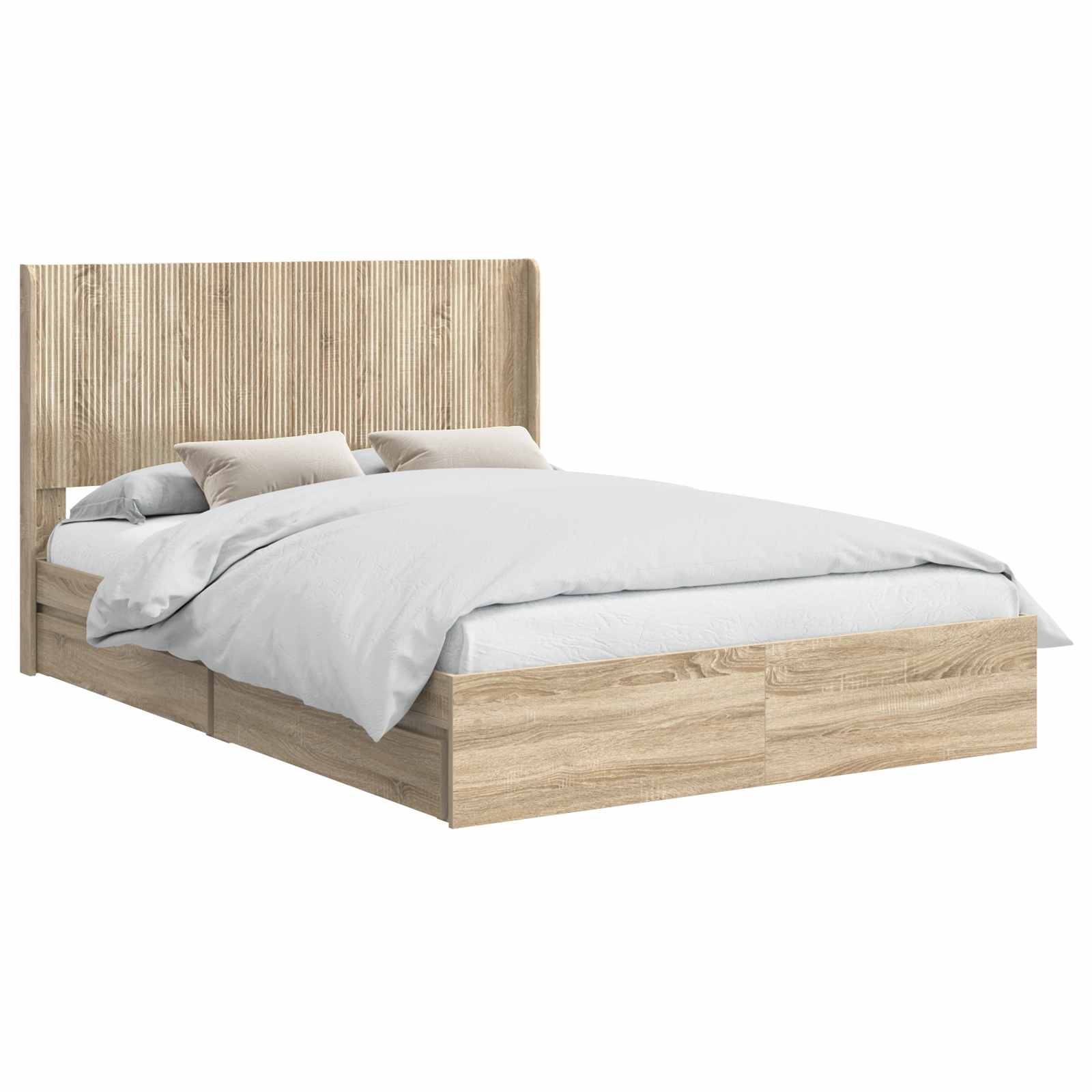Sängynrunko säilytyksellä ja päänäytöllä Sonoma-tammi