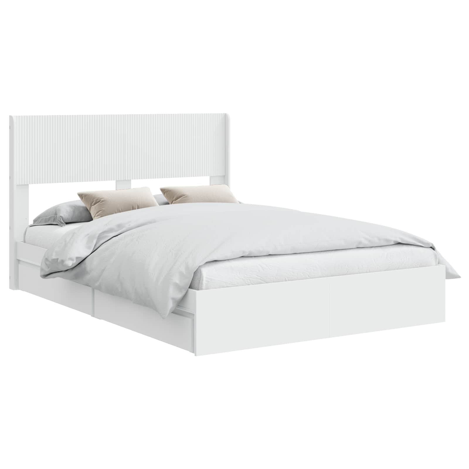 • Integroitu säilytystila: Sängyssä on kätevät säilytystilat, jotka on suunniteltu säästämään tilaa ja pitämään makuuhuoneen tavaroita järjestyksessä. Ne tarjoavat käytännöllisen ratkaisun vuodevaatteille ja muille makuuhuoneen tavaroille tyylillä.