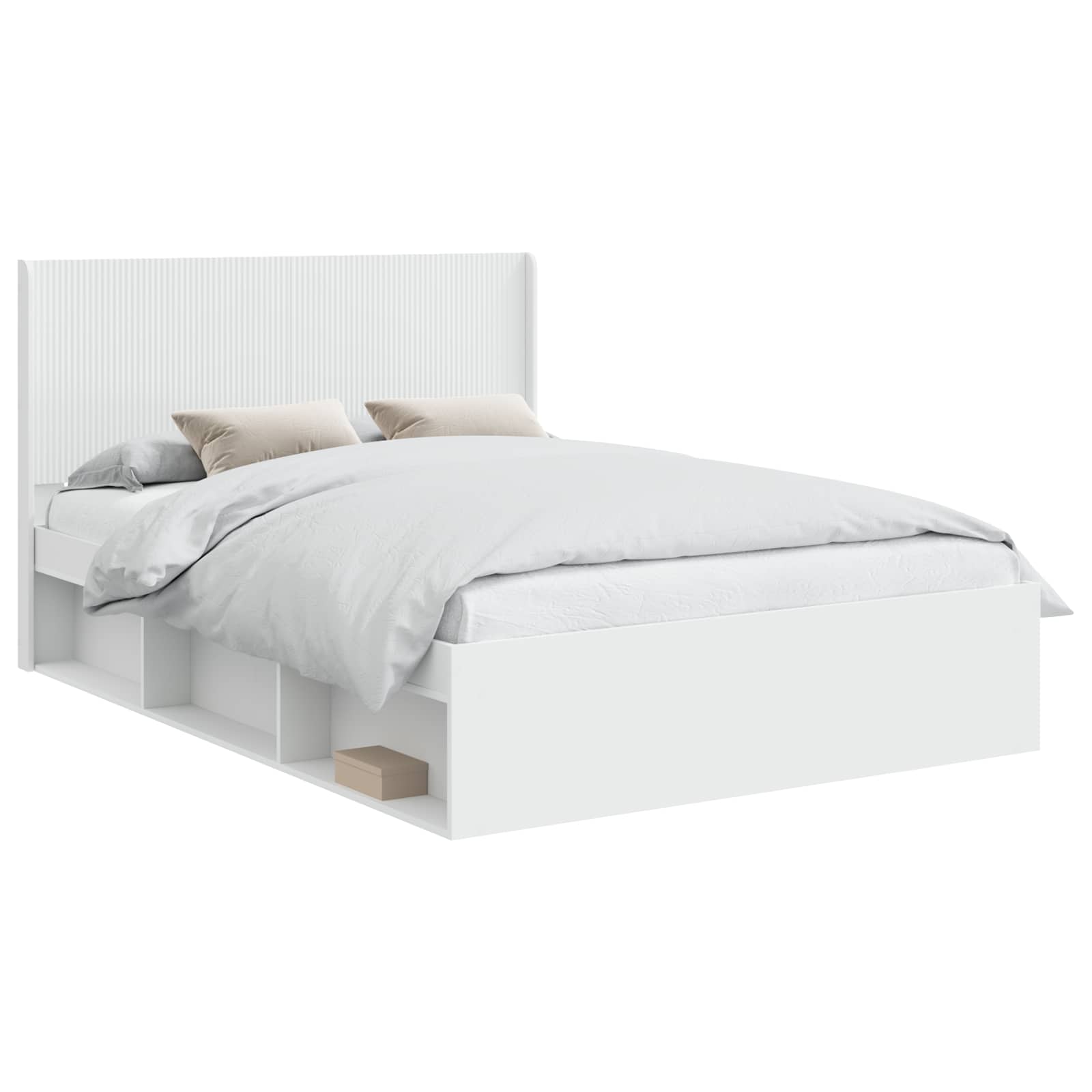 Sängynrunko säilytyksellä ja päänäytöllä valkoinen