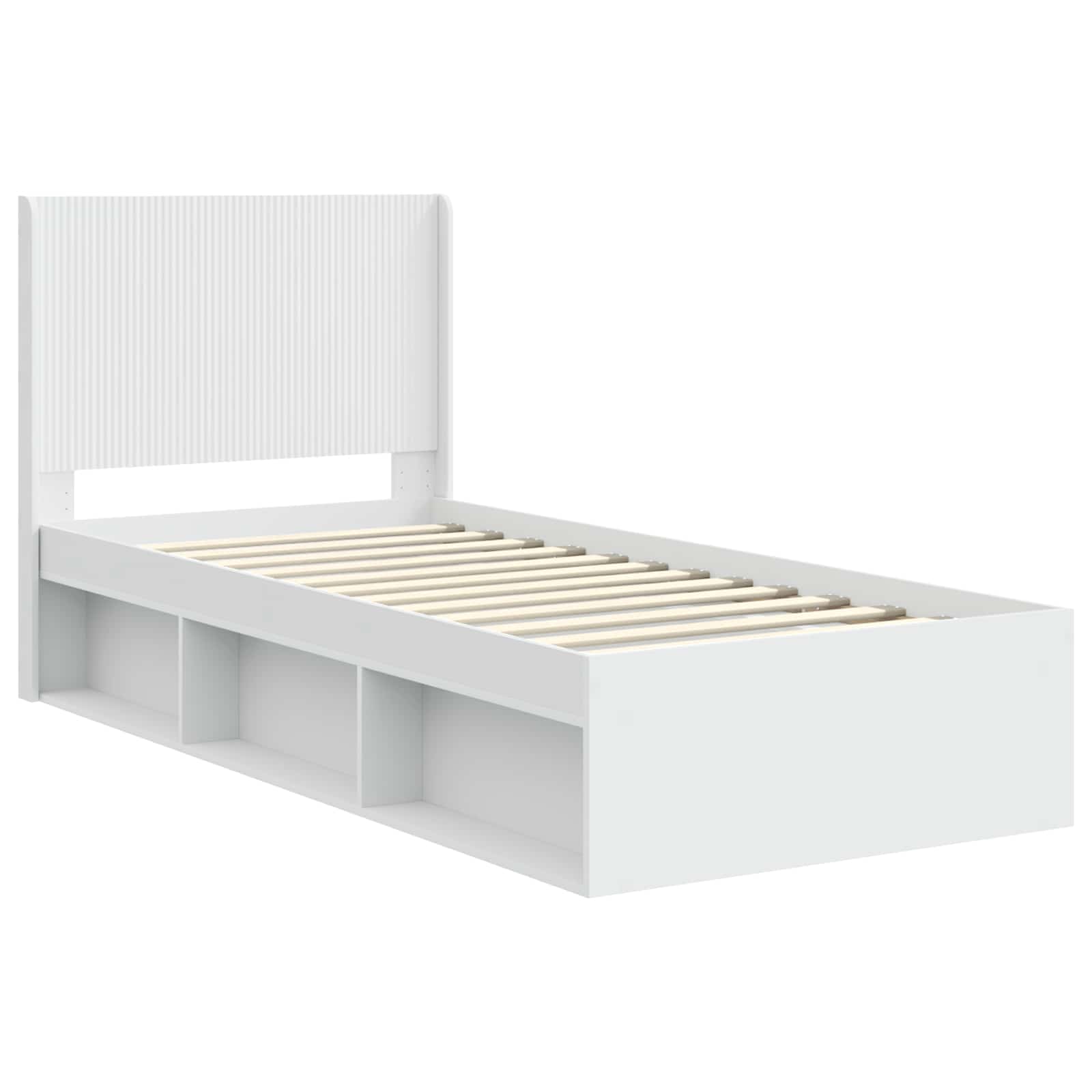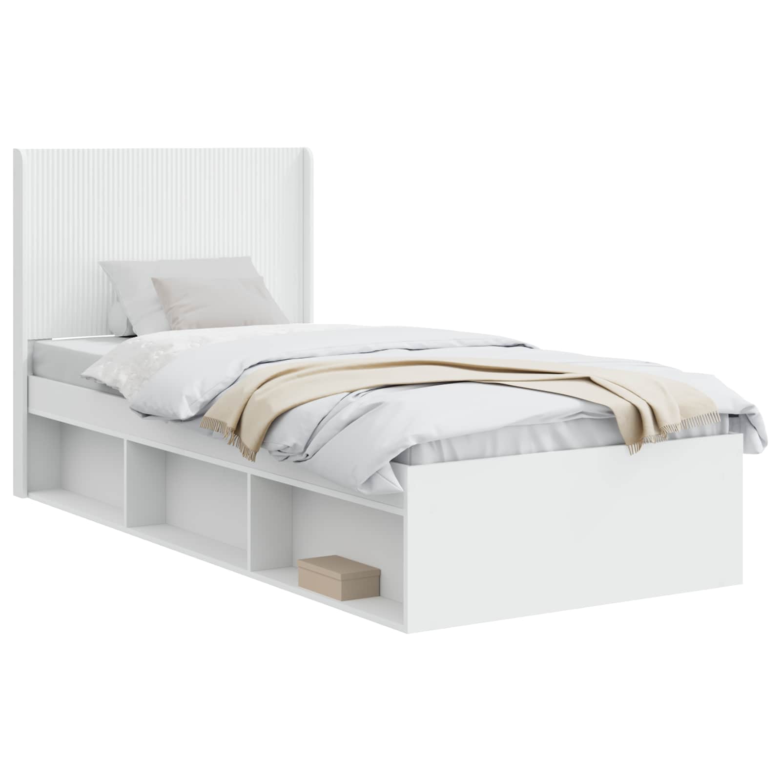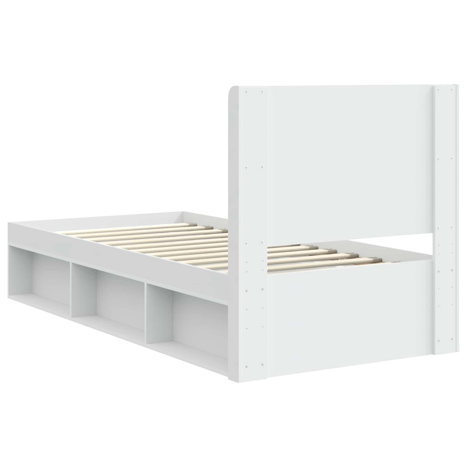 Sängynrunko säilytyksellä ja päänäytöllä valkoinen 90 x 200 cm