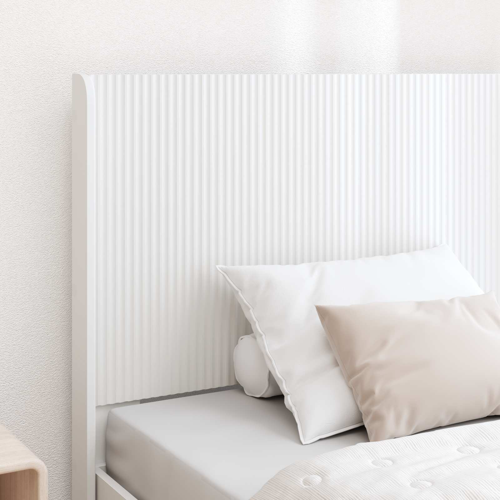 • Moderni minimalistinen muotoilu: Puhtaat linjat ja sulavalinjainen siluetti tuovat modernia tyyliä makuuhuoneeseen. Yksinkertainen muotoilu luo rauhallisen tunnelman nukkumistilaan.
