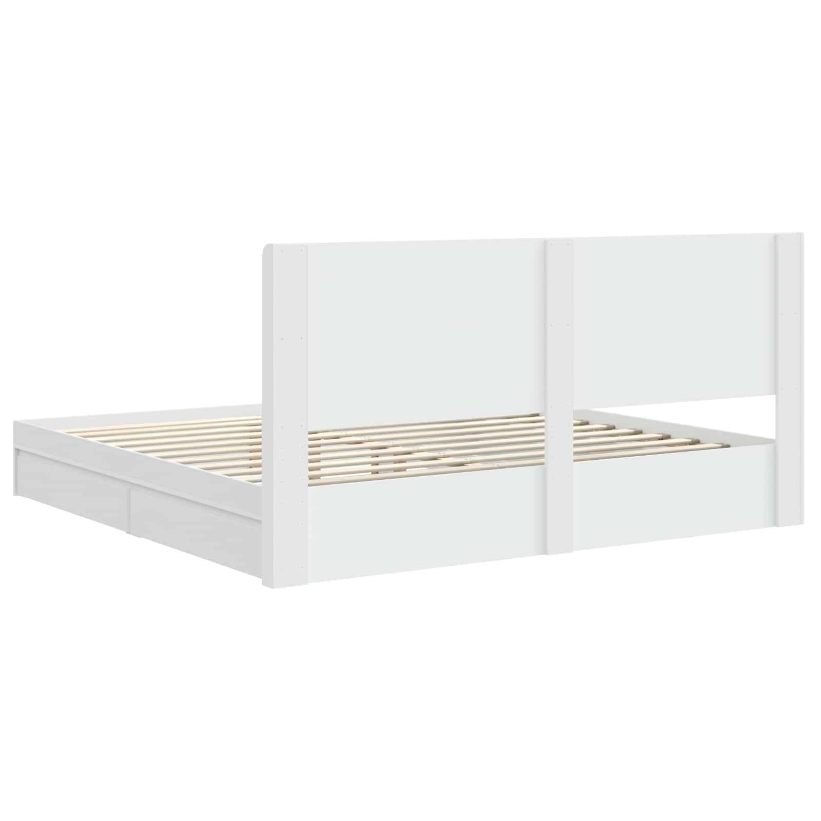 Sängynrunko säilytyksellä ja päänäytöllä valkoinen
