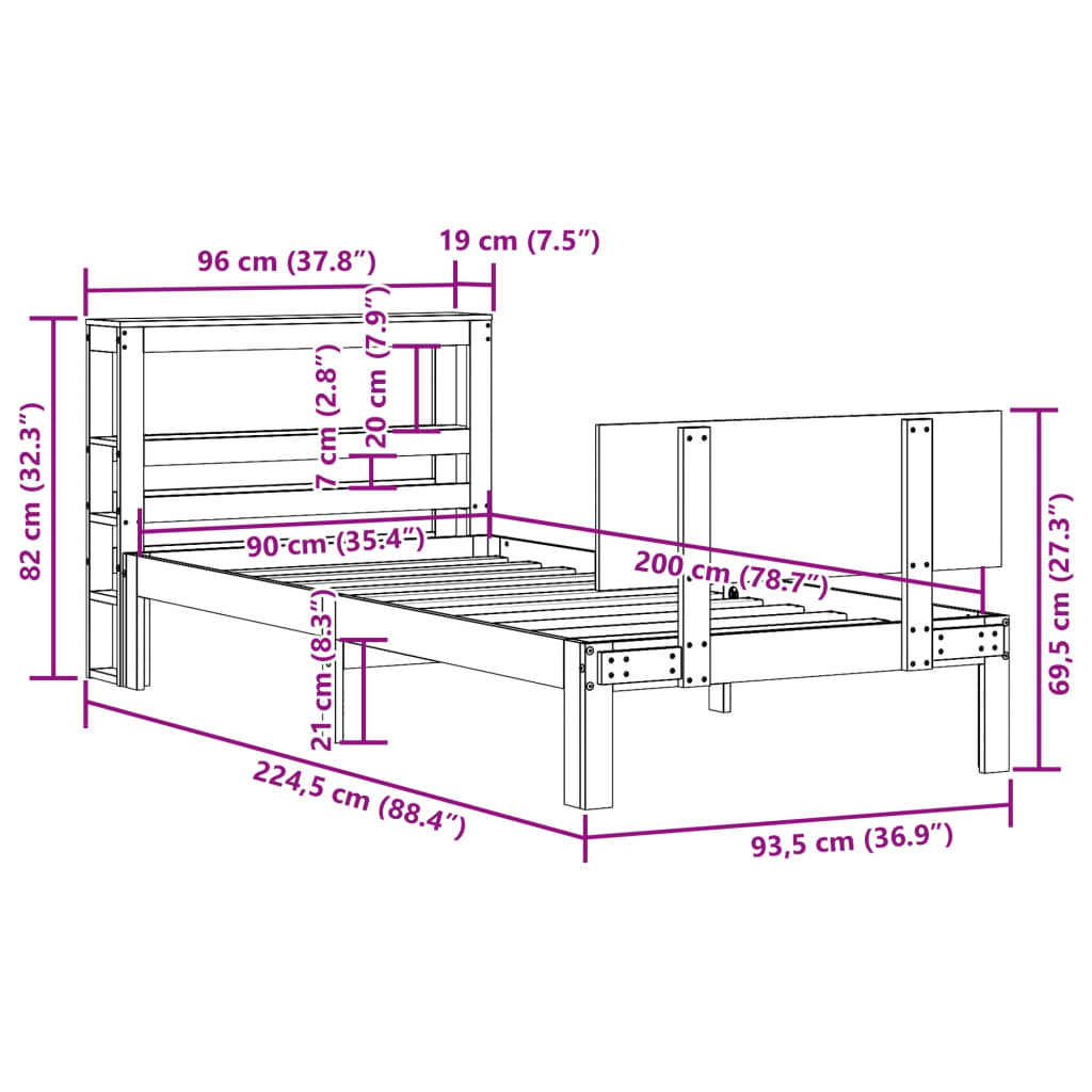 Sängynrunko sängynpäädyllä 90×200 cm täysi mänty