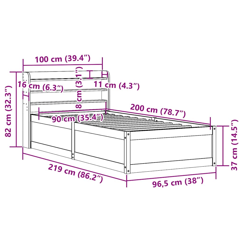 • Sopiva patjan koko: 90 x 200 cm (L x P) (patja ei sisälly toimitukseen)
