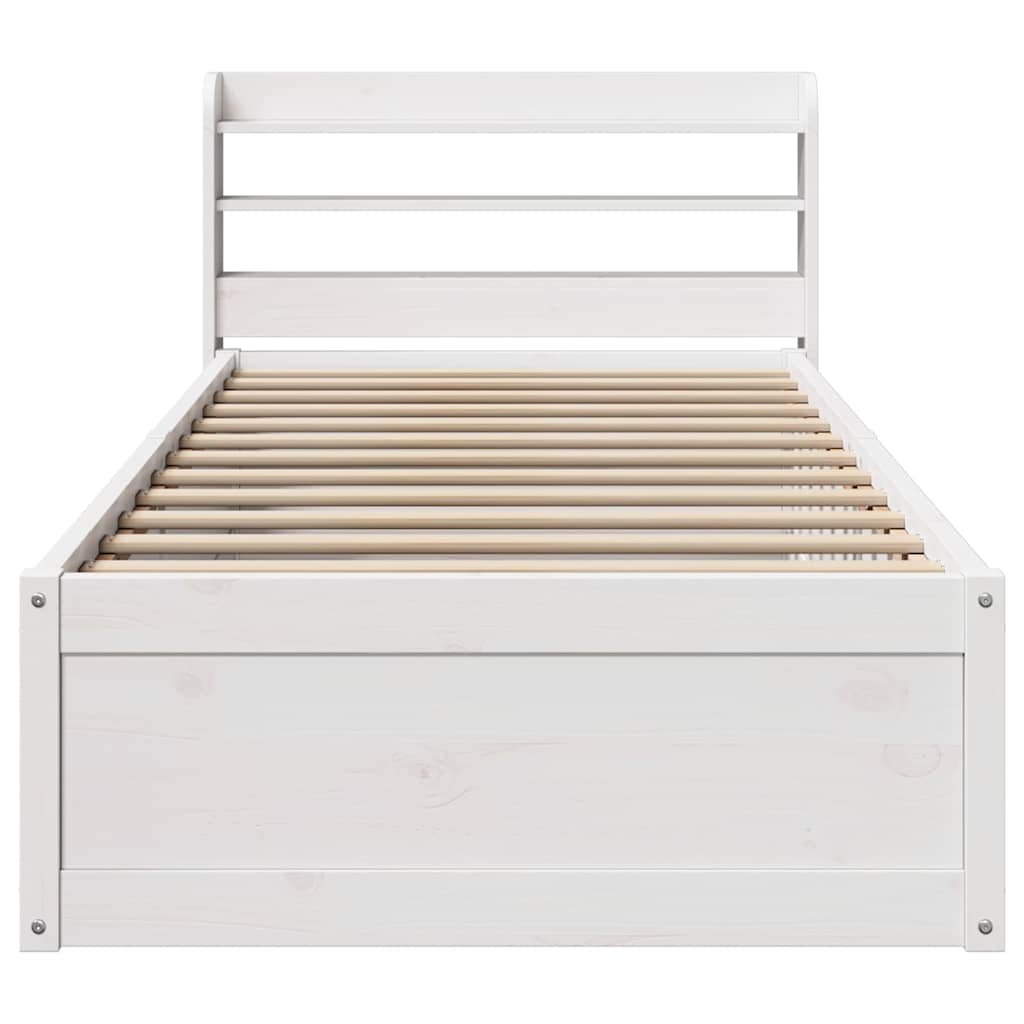 Sängynrunko sängynpäädyllä valkoinen 90×200 cm täysi mänty