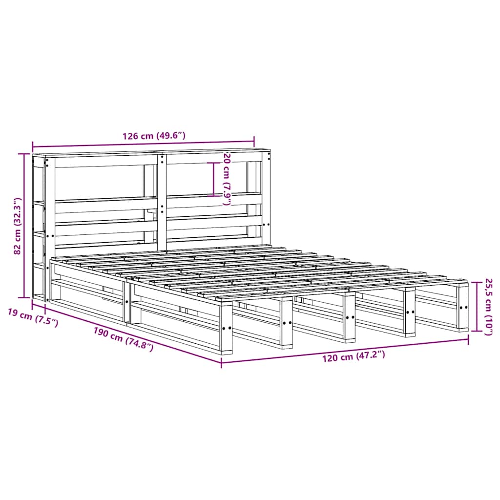 Sänky ilman patjaa 120×190 cm täysi mänty