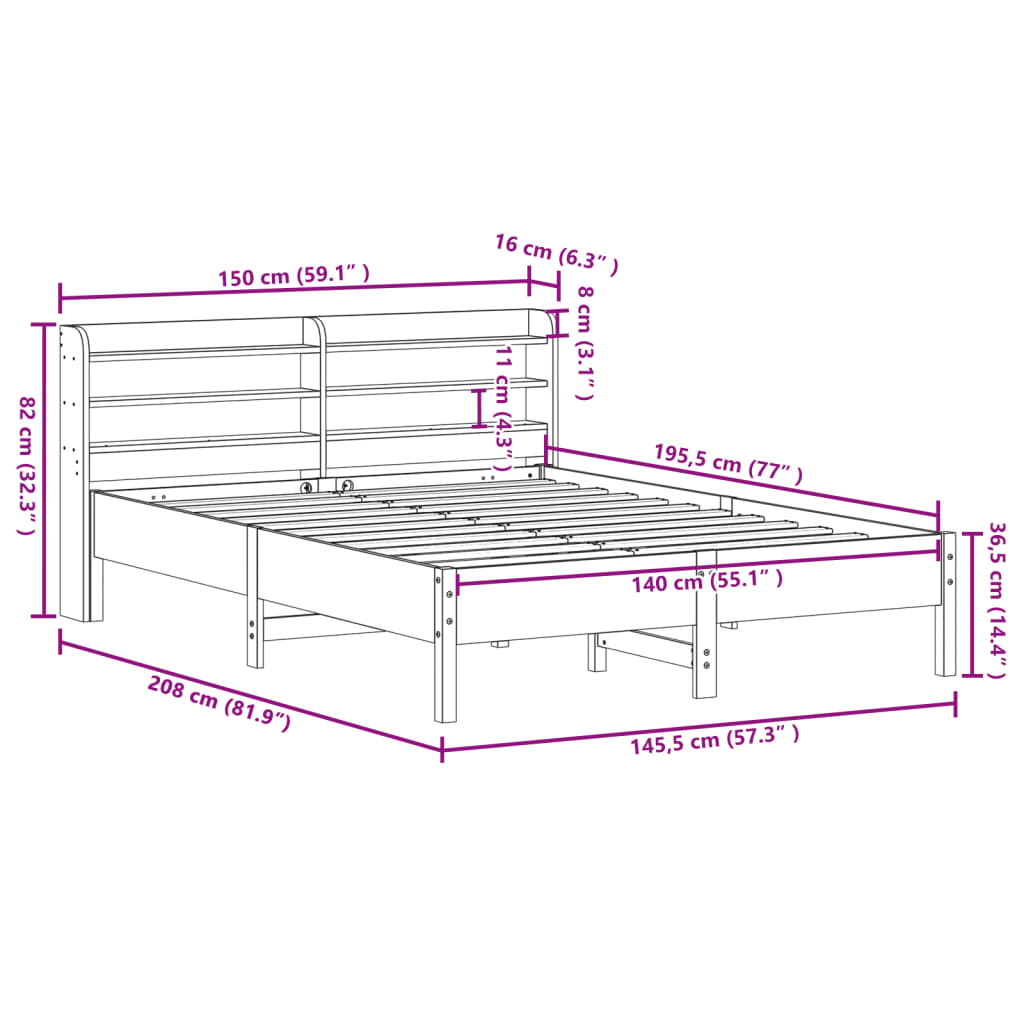 Sänky ilman patjaa vahanruskea 140×190 cm täysi mänty