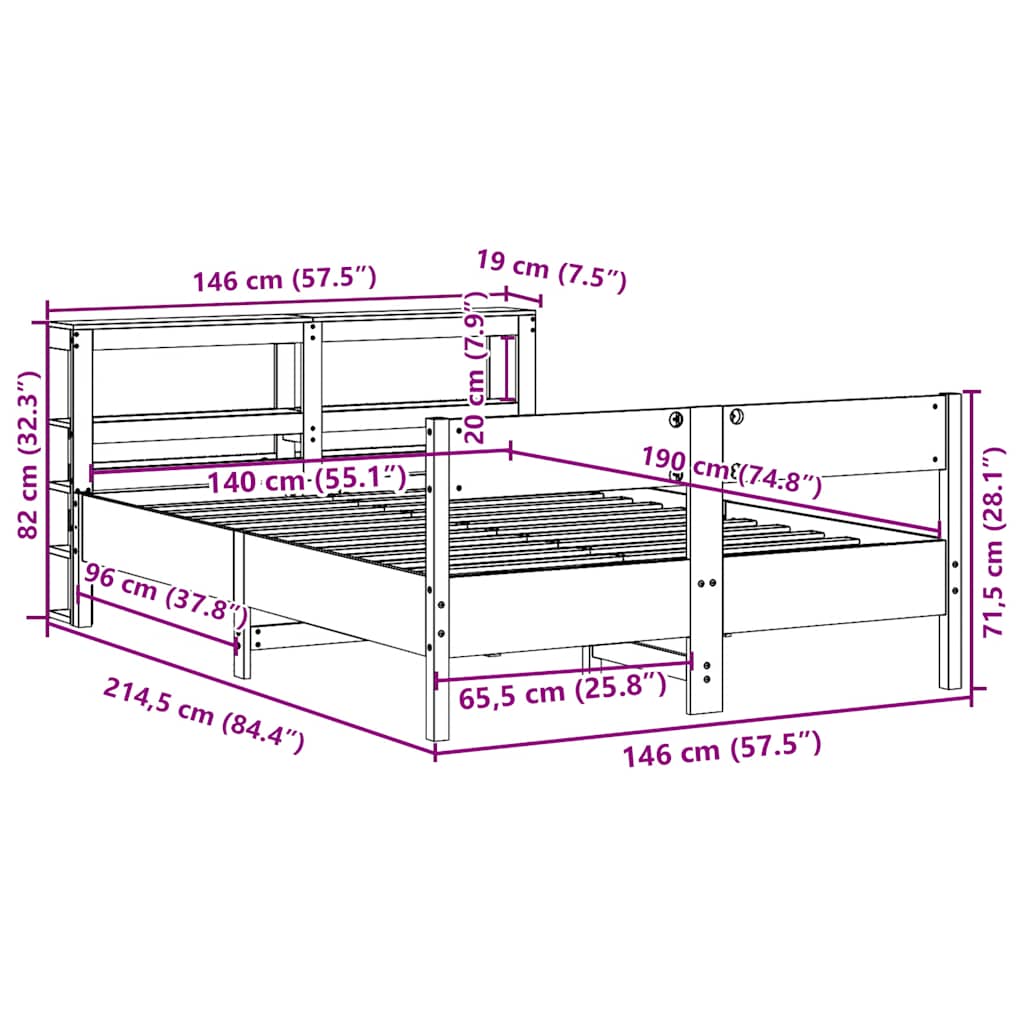 Sänky ilman patjaa vahanruskea 140×190 cm täysi mänty