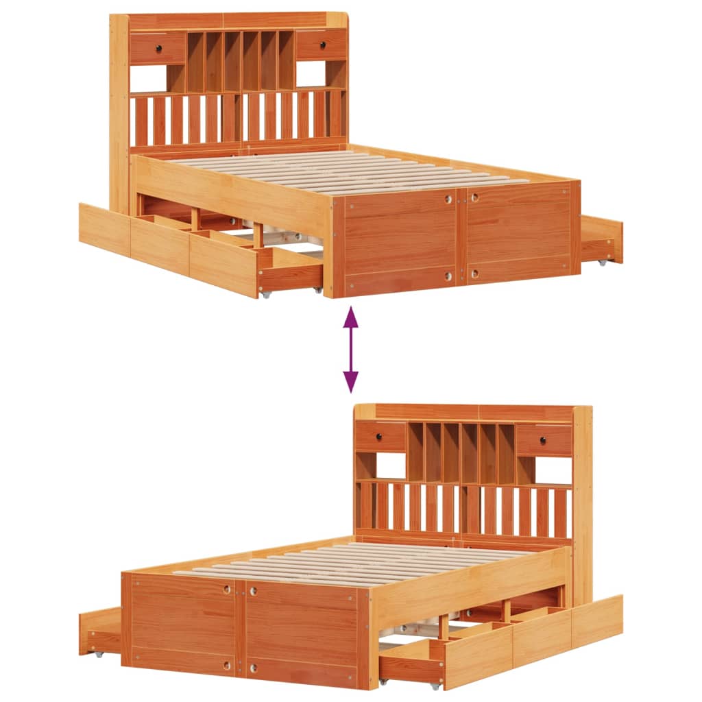 Sänky kirjahyllyllä ei patjaa vahanrusk. 135×190 cm täysi mänty