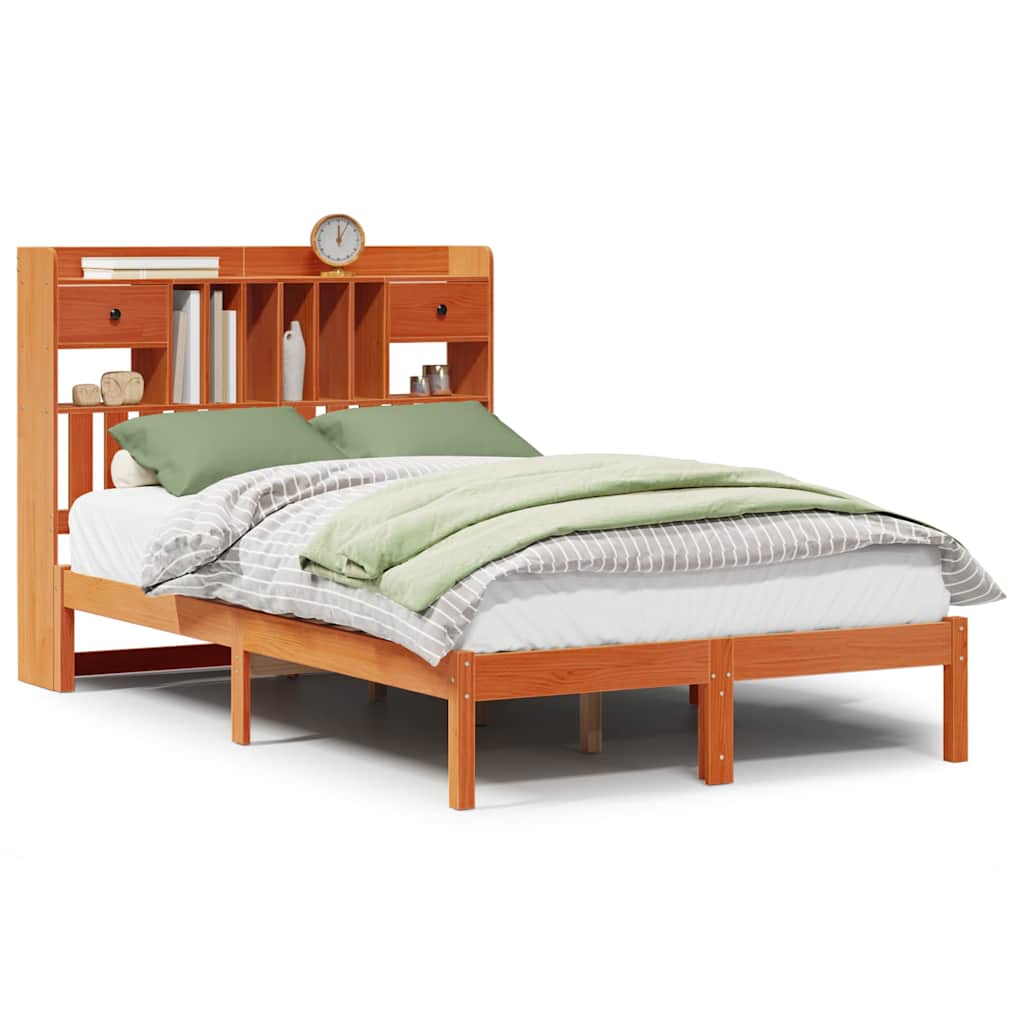 Sänky kirjahyllyllä ei patjaa vahanrusk. 135×190 cm täysi mänty