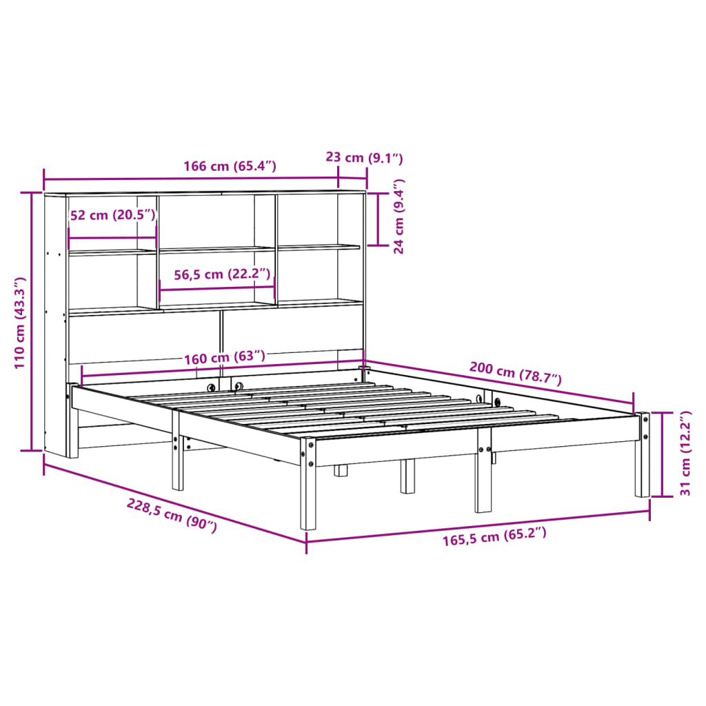 Sänky kirjahyllyllä ei patjaa vahanrusk. 160×200 cm täysi mänty