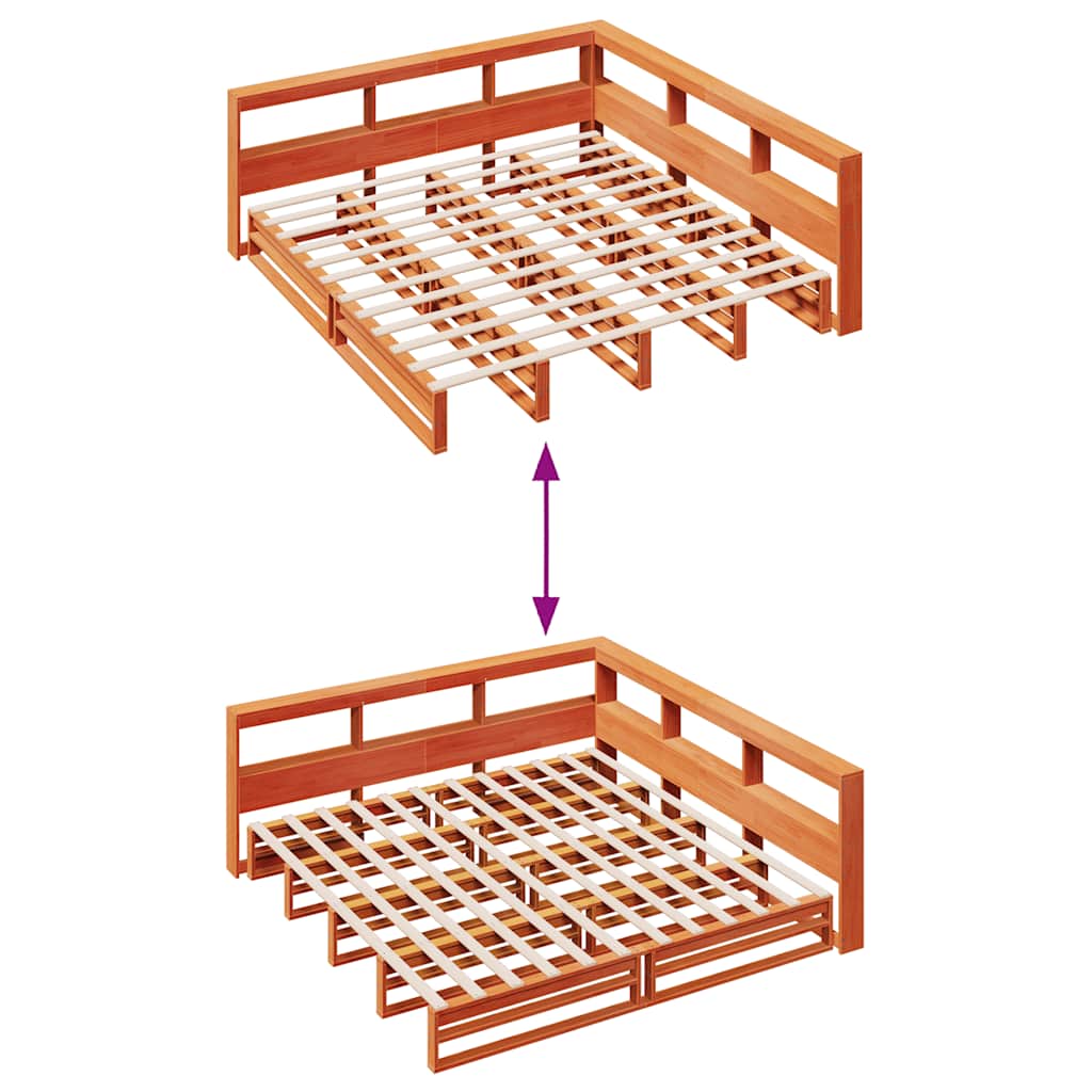 Sänky kirjahyllyllä ei patjaa vahanrusk. 200×200 cm täysi mänty