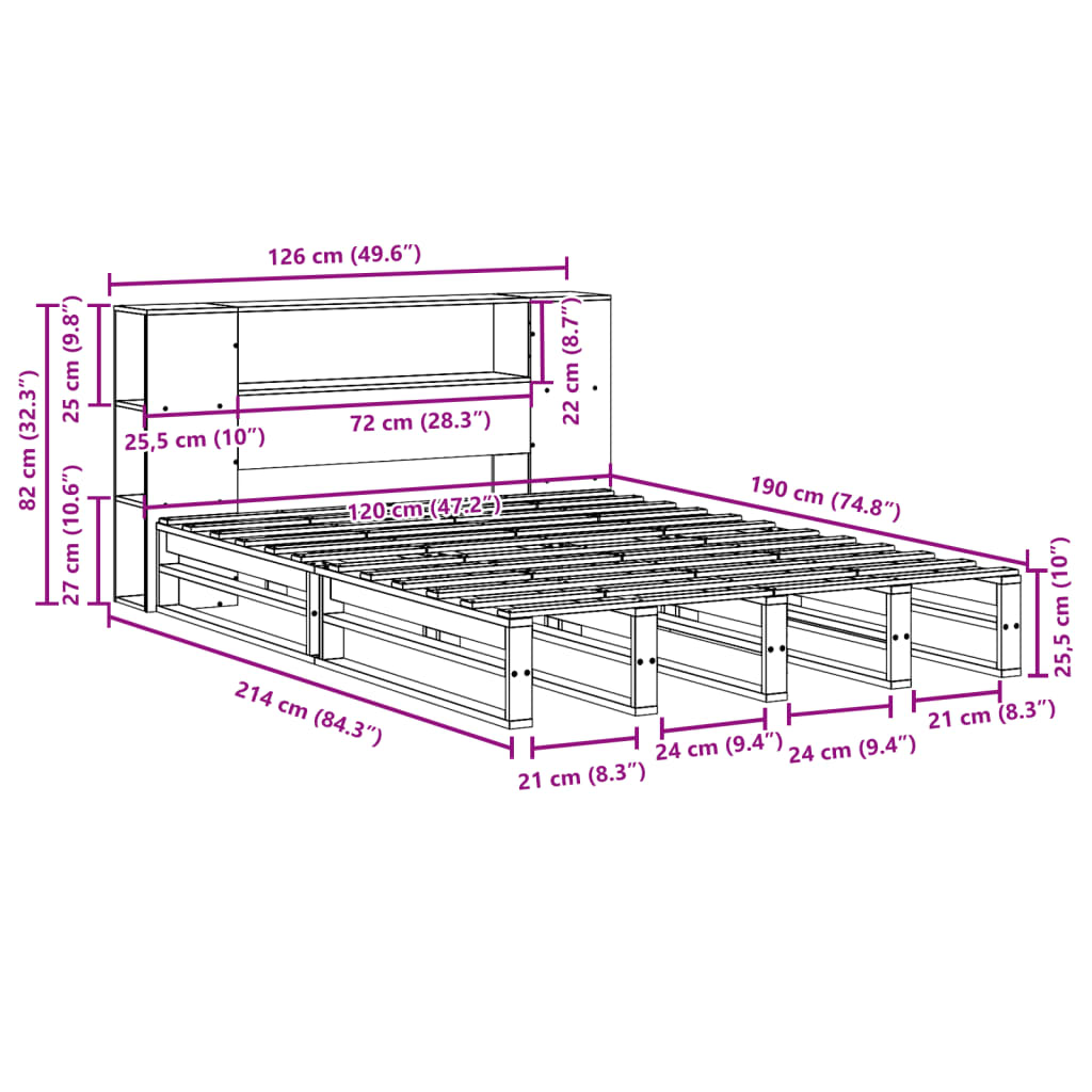 Sänky kirjahyllyllä ei patjaa valkoinen 120×190 cm täysi puu
