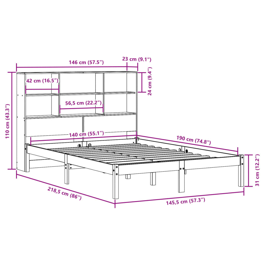 Sänky kirjahyllyllä ei patjaa valkoinen 140×190 cm täysi mänty