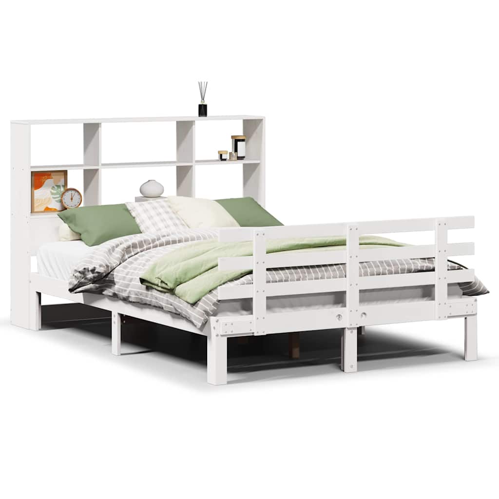Sänky kirjahyllyllä ei patjaa valkoinen 160×200 cm täysi mänty