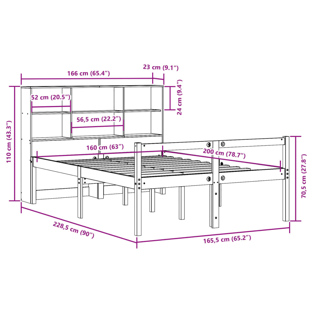 Sänky kirjahyllyllä ei patjaa valkoinen 160×200 cm täysi mänty