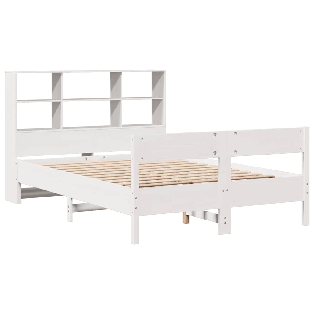 Sänky kirjahyllyllä ei patjaa valkoinen 160×200 cm täysi mänty