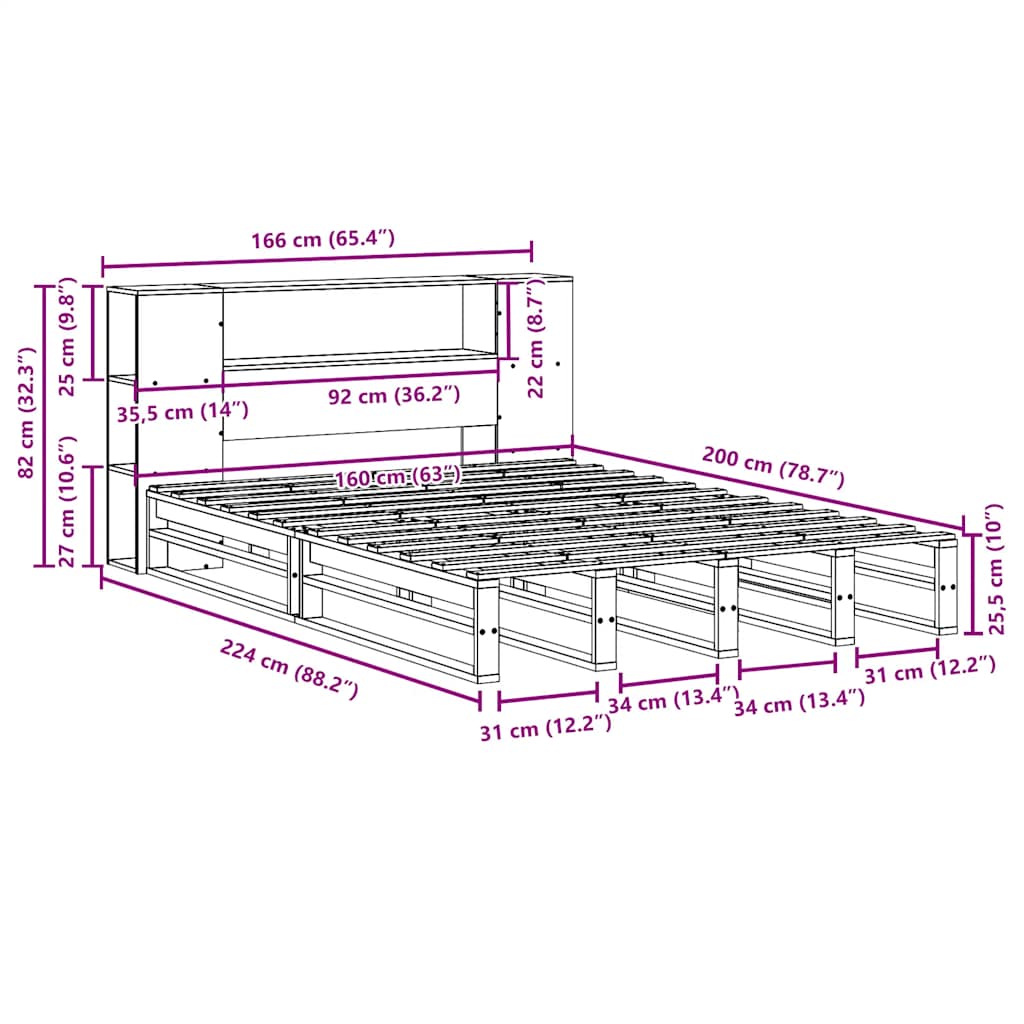Sänky kirjahyllyllä ei patjaa valkoinen 160×200 cm täysi puu