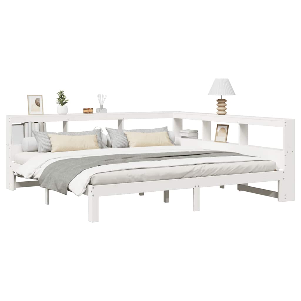 Sänky kirjahyllyllä ei patjaa valkoinen 180×200 cm täysi mänty