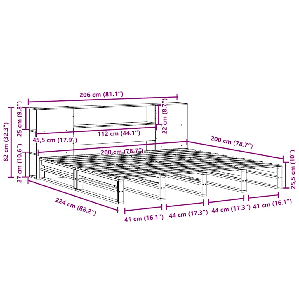 Sänky kirjahyllyllä ei patjaa valkoinen 200×200 cm täysi puu