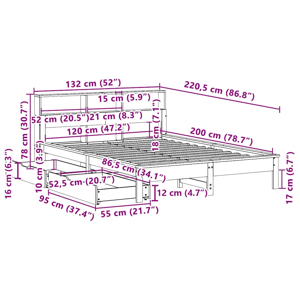 Sänky kirjahyllyllä ilman patjaa 120×200 cm täysi mänty