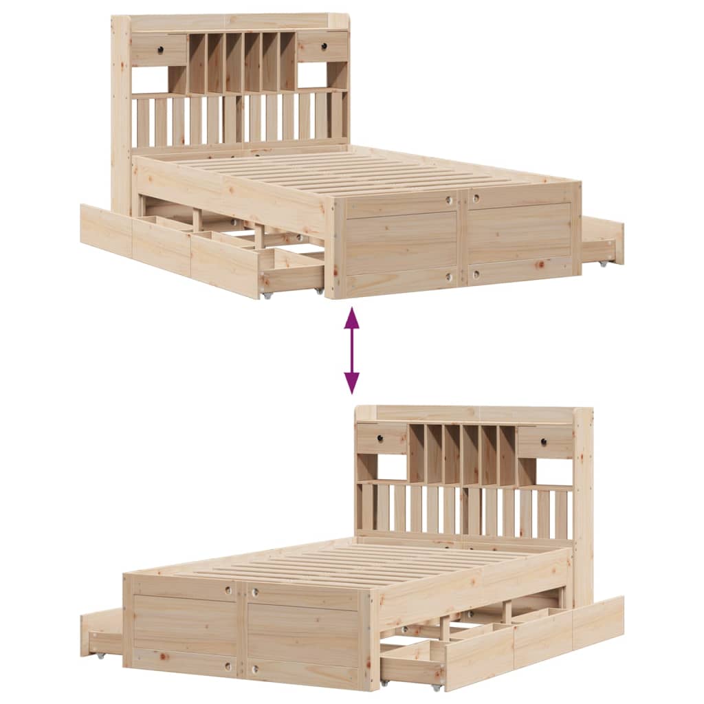 Sänky kirjahyllyllä ilman patjaa 135×190 cm täysi mänty