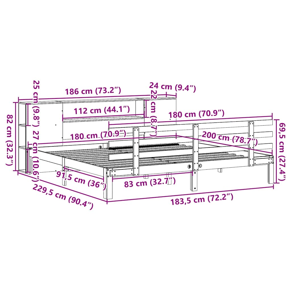 Sänky kirjahyllyllä ilman patjaa 180×200 cm täysi mänty