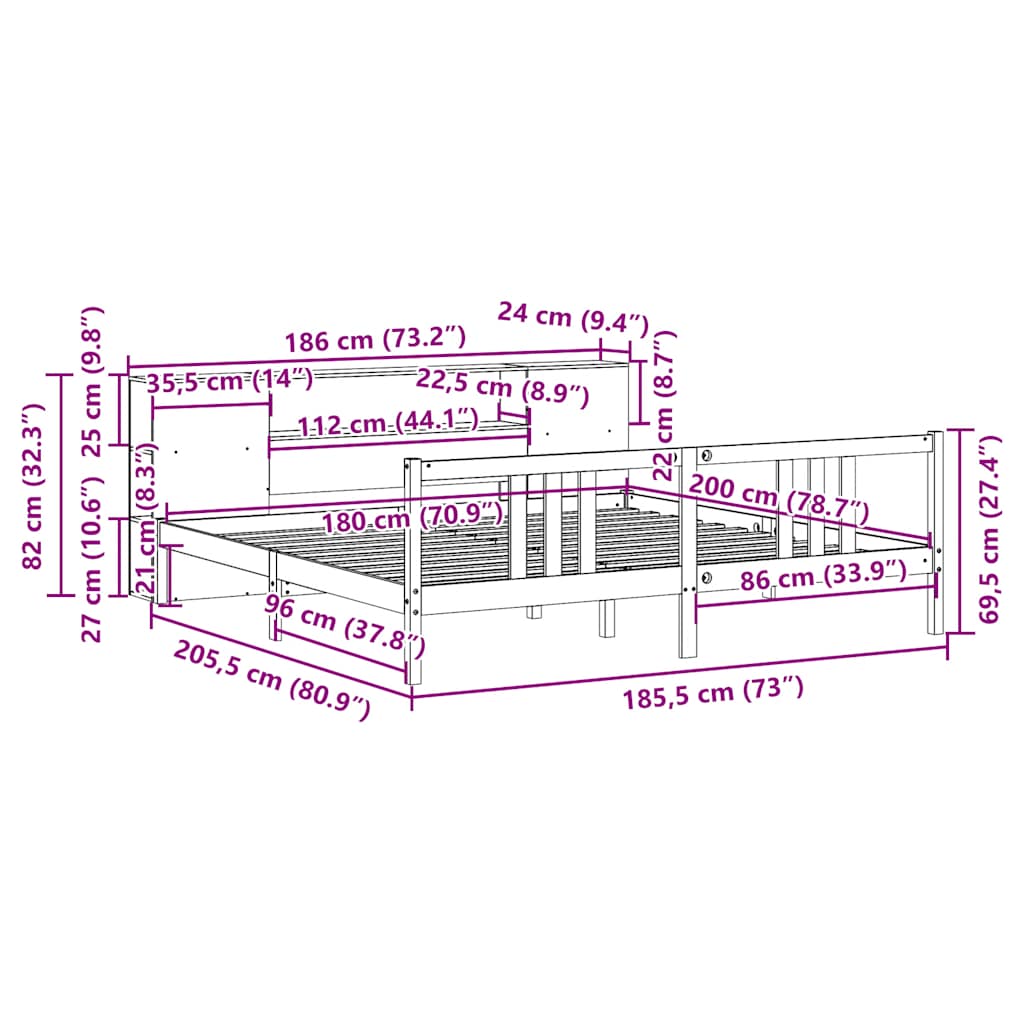 Sänky kirjahyllyllä ilman patjaa 180×200 cm täysi mänty