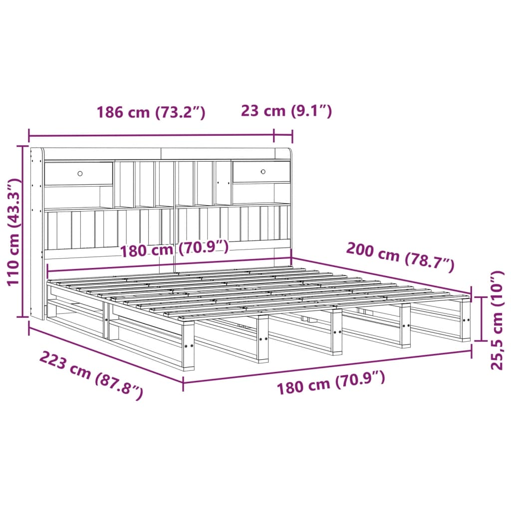 Sänky kirjahyllyllä ilman patjaa 180×200 cm täysi mänty