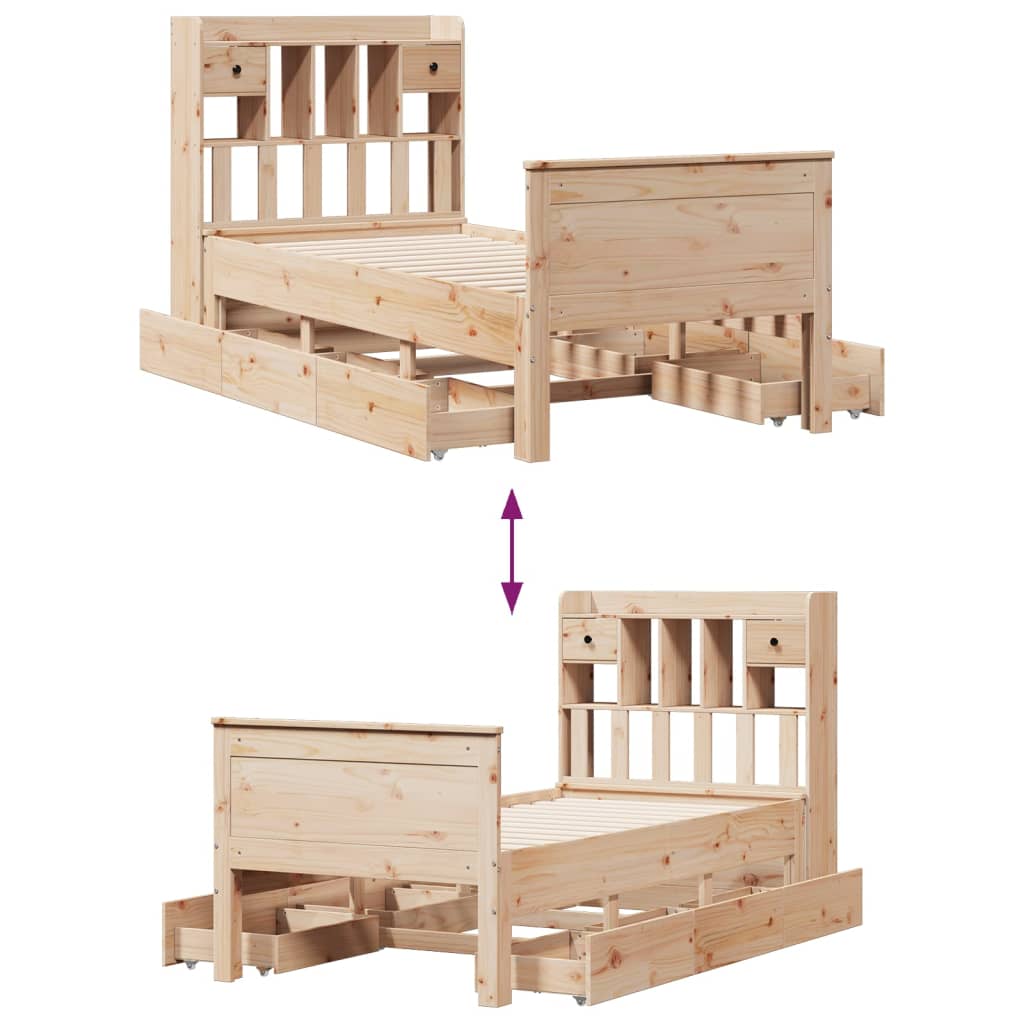 Sänky kirjahyllyllä ilman patjaa 90×190 cm täysi mänty