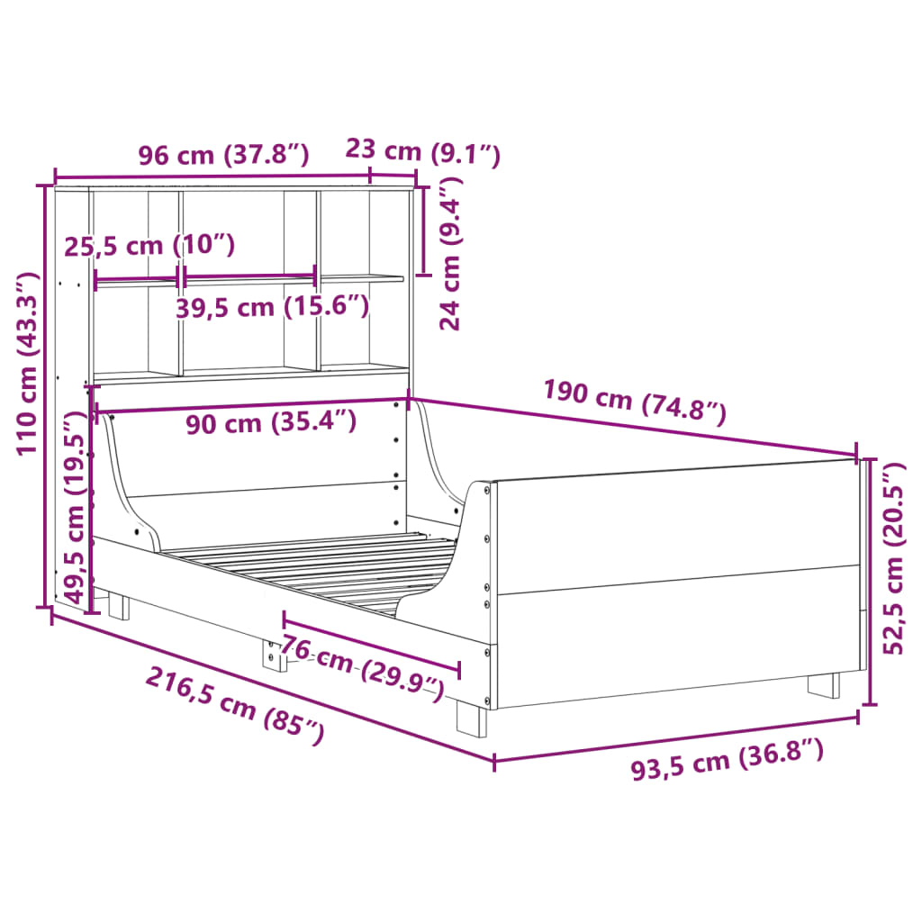Sänky kirjahyllyllä ilman patjaa 90×190 cm täysi puu