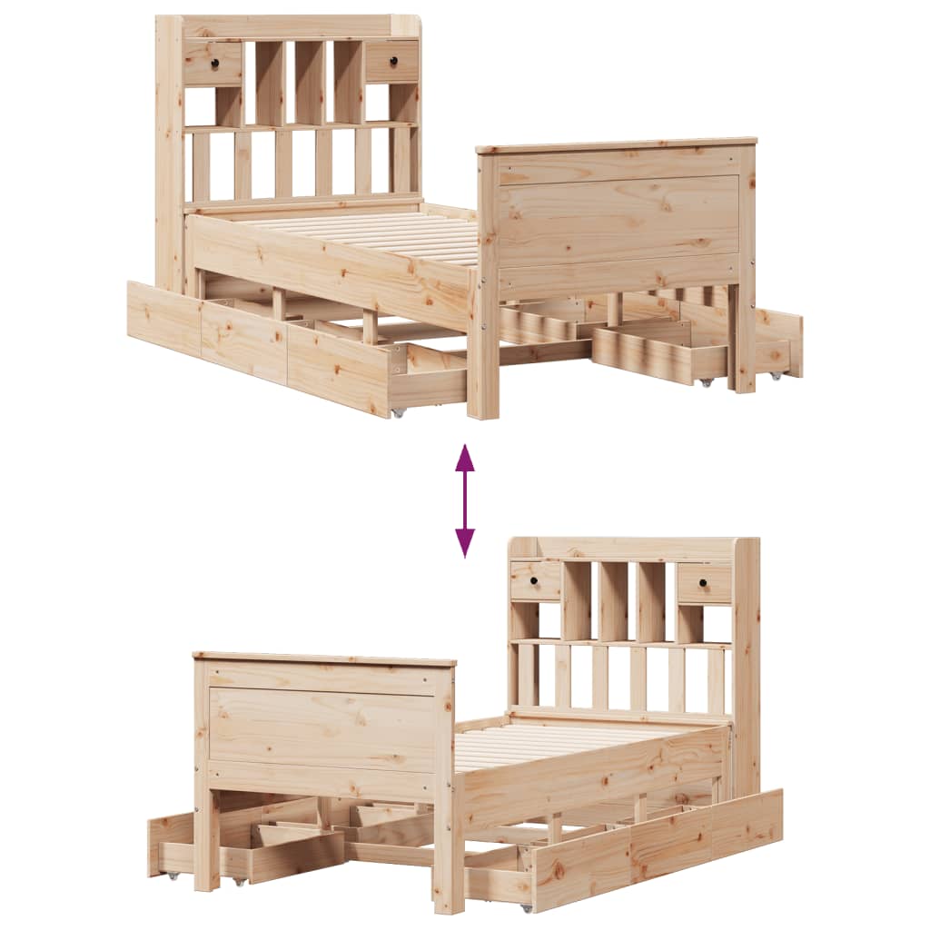 Sänky kirjahyllyllä ilman patjaa 90×200 cm täysi mänty