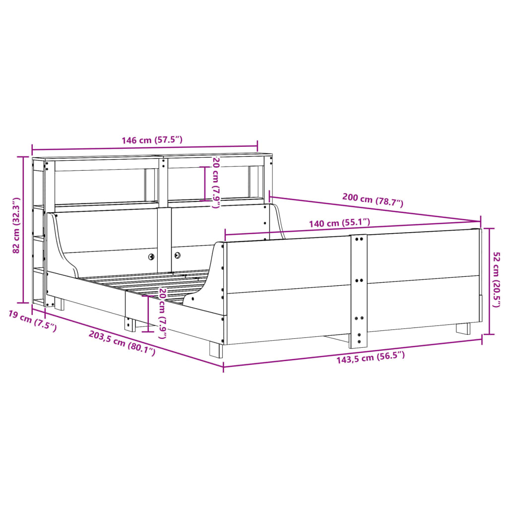 Sänky patjalla ilman vahanruskea 140×200 cm täysi mänty