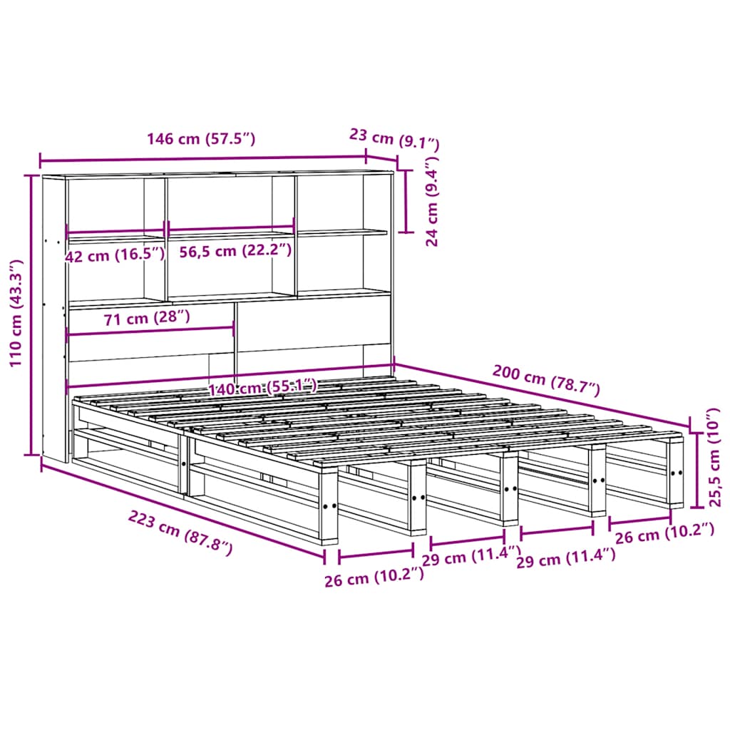 Sänky patjalla ilman vahanruskea 140×200 cm täysi puu