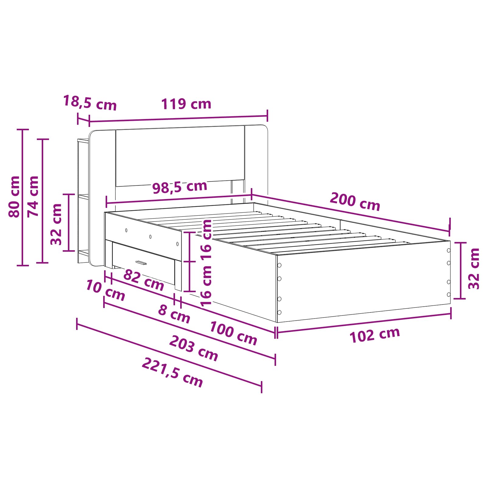 • 1 x Sänkykehys: 102 x 203 x 32 cm (P x L x K)