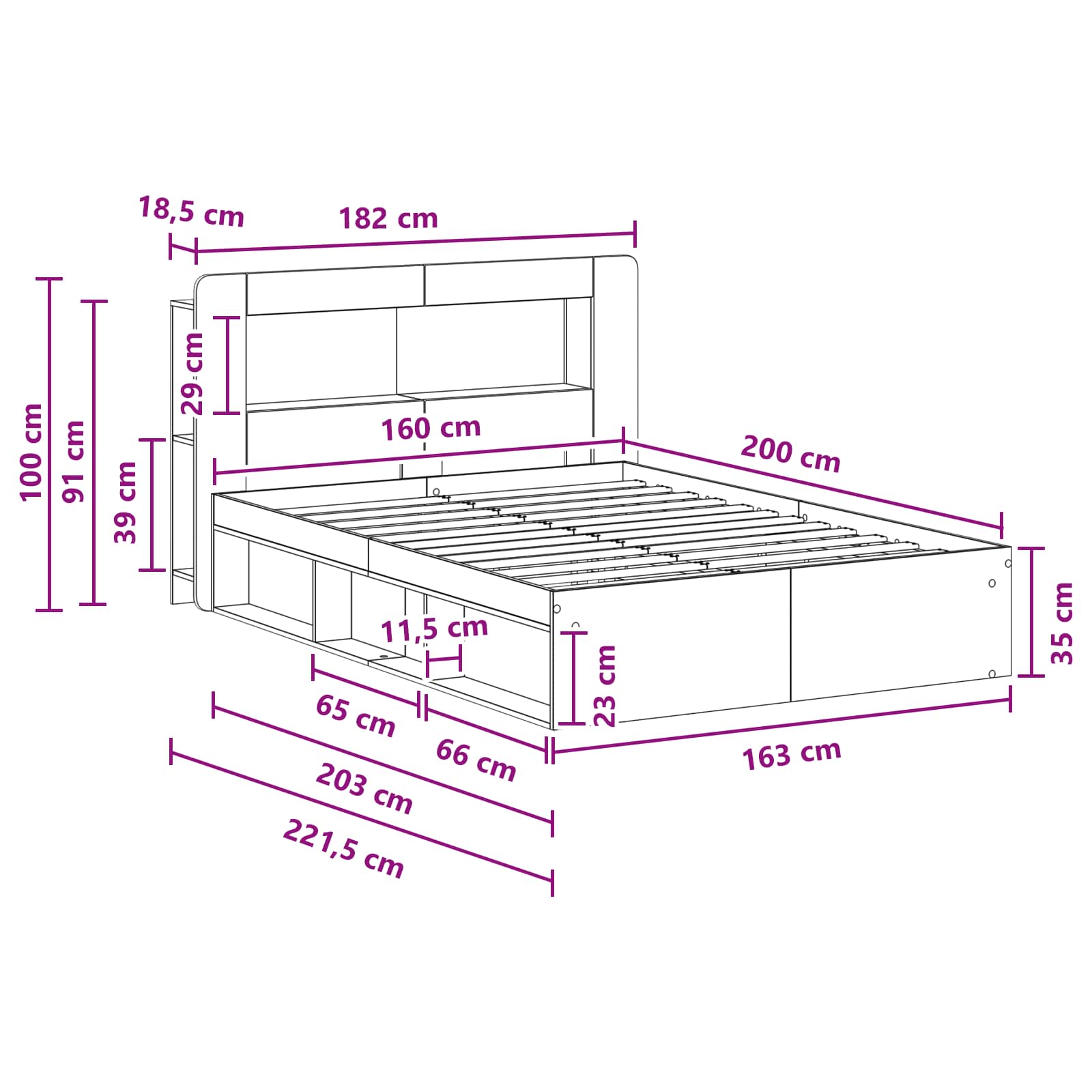 • 1 x Sänky: 163 x 203 x 35 cm (P x L x K)