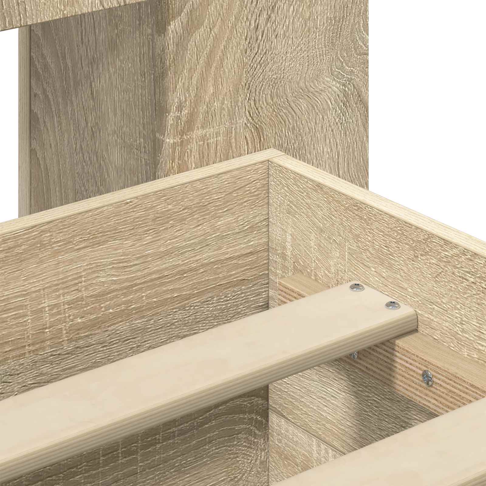 • Vankka rakenne: Kestävä teknisestä puusta valmistettu sängynrunko tuo luotettavaa tukea jokapäiväiseen käyttöön. Kiinteät paneelit ja tasapainoinen kehys tukevat säilytysratkaisuja ja säilyttävät siistin ilmeen myös pitkään.