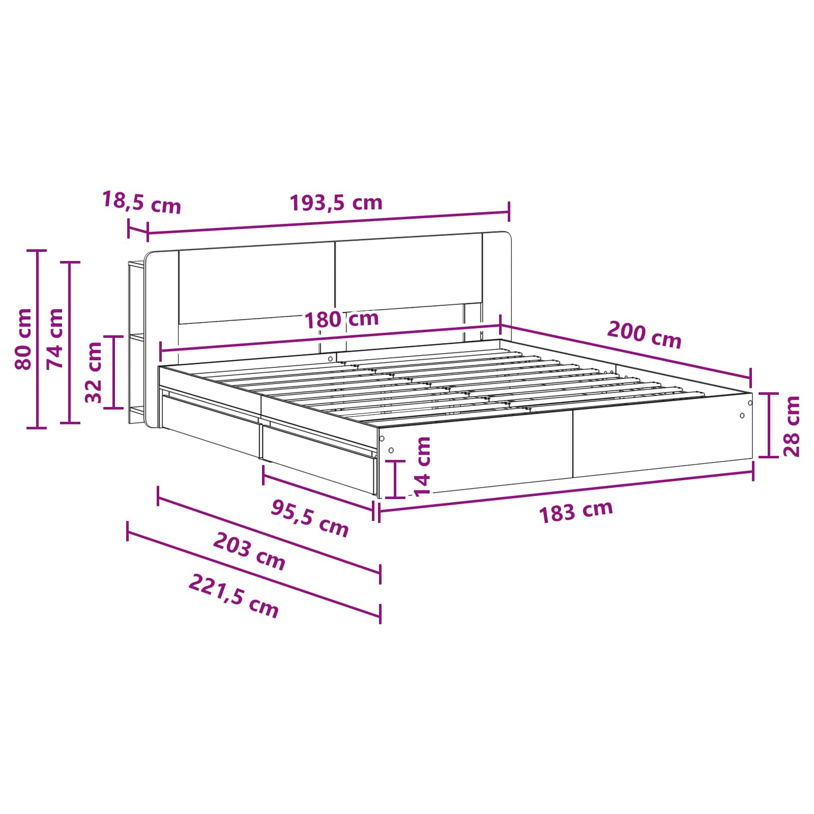 • Sängyn korkeus: 28 cm