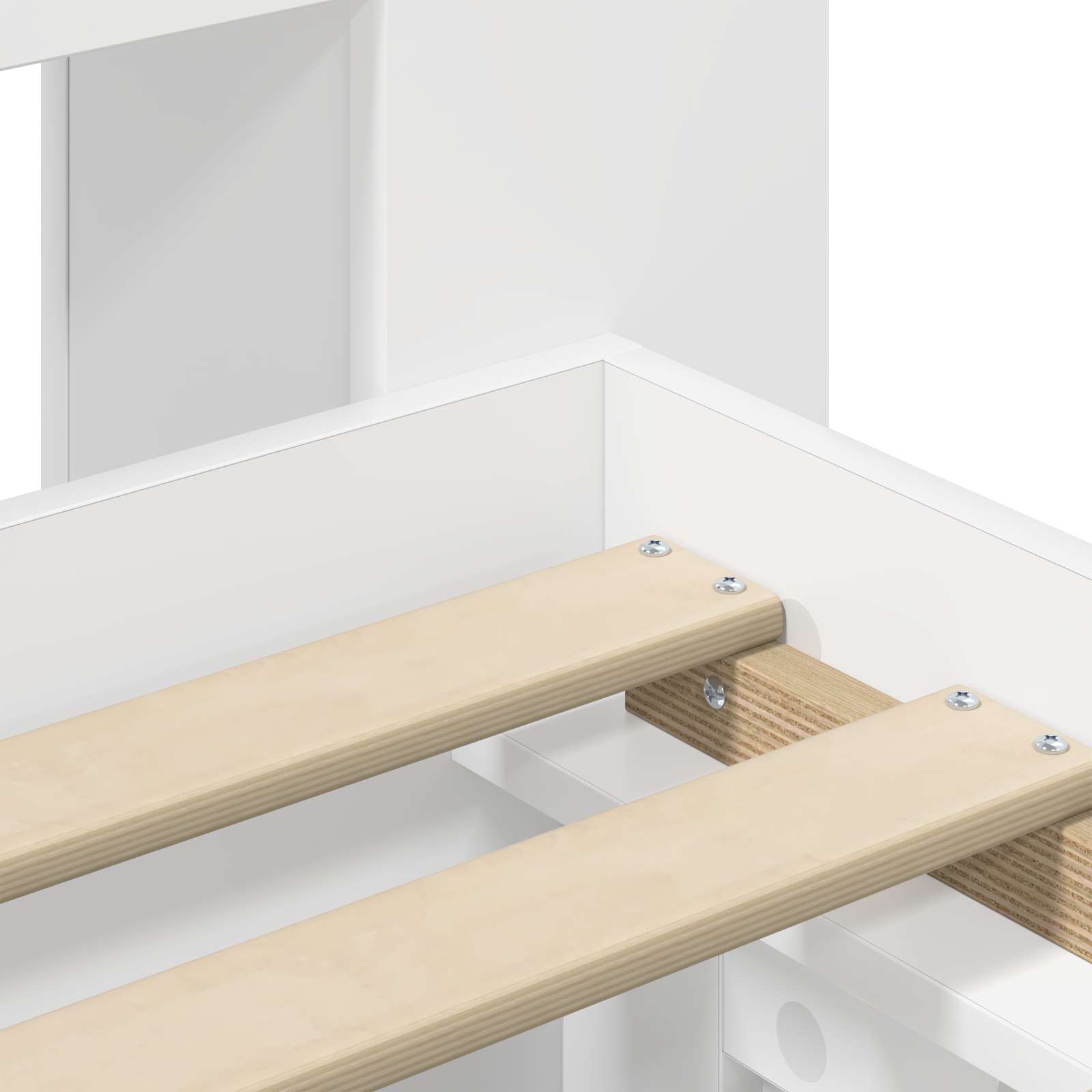 • Kiinteä sälepohja: Sängyssä on kiinteä sälepohja, joka on valmistettu kestävästä materiaalista. Vaikka se on jäykkä, se tarjoaa mukavuutta ja tukevuutta, jotta unesi olisi parempaa.