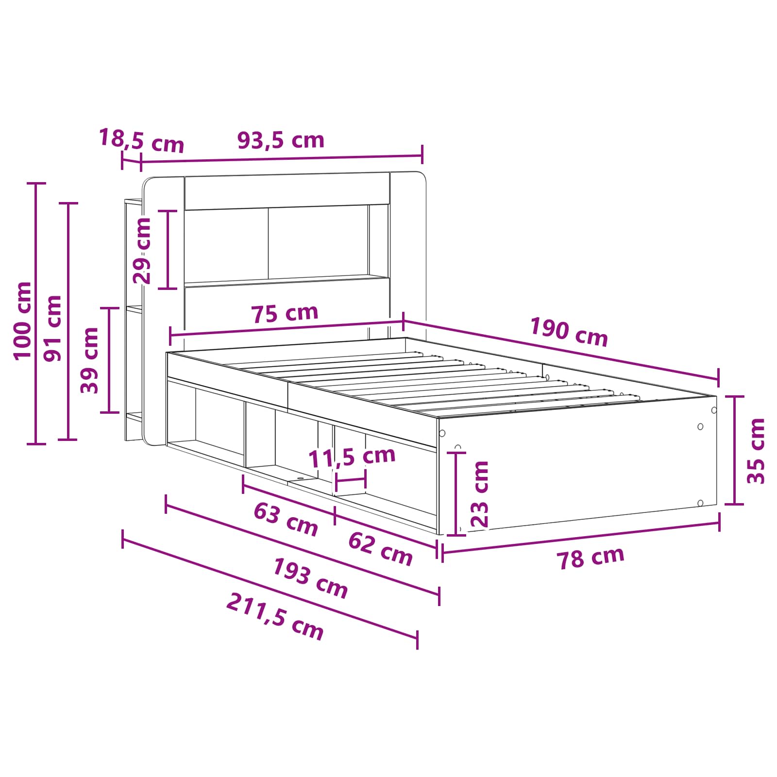 • 1 x Päänalustakaappi: 93,5 x 18,5 x 100 cm (L x S x K)