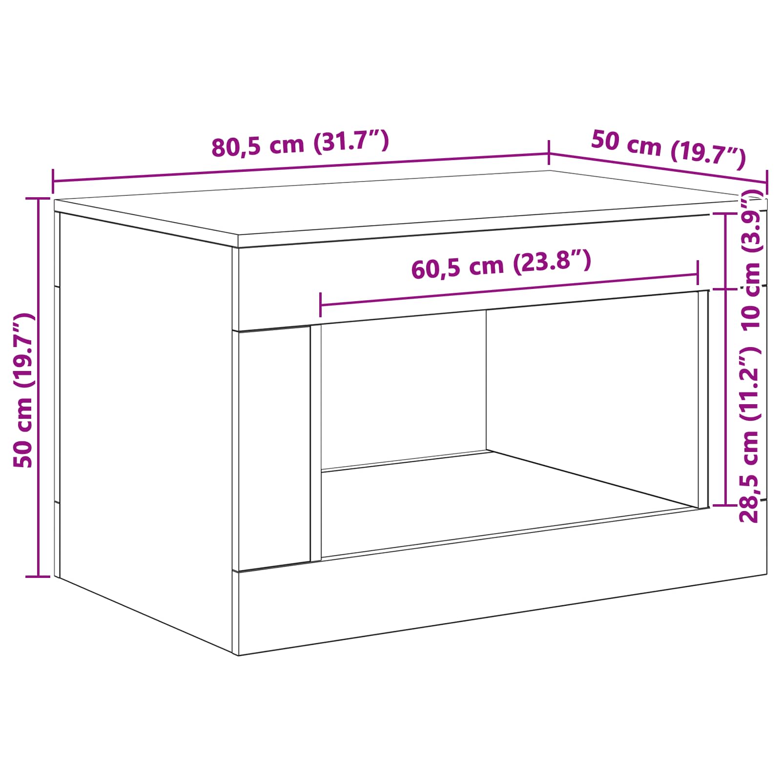 • Yleiset mitat: 80,5 x 50 x 50 cm (P x L x K)