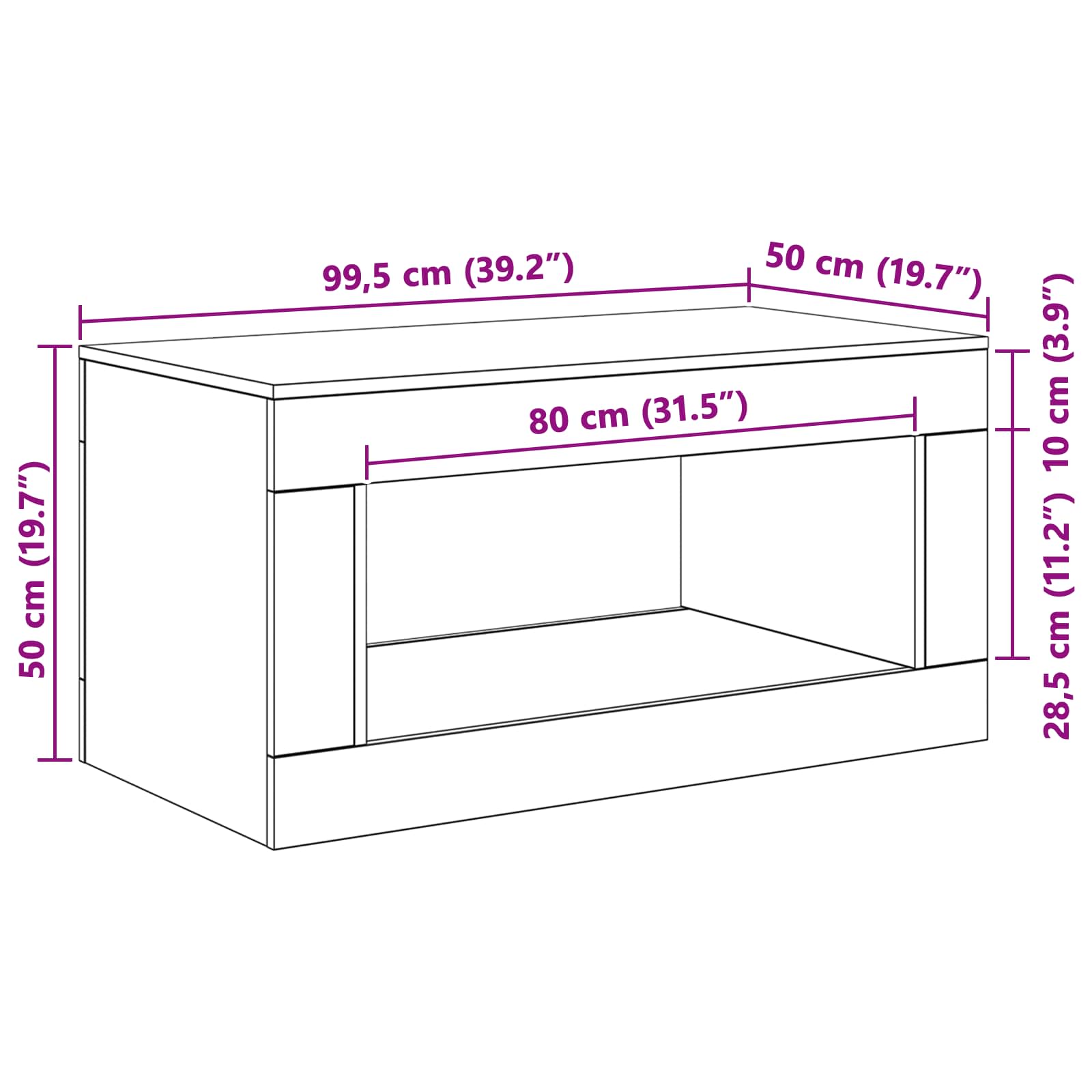 • Yleiset mitat: 99,5 x 50 x 50 cm (P x L x K)
