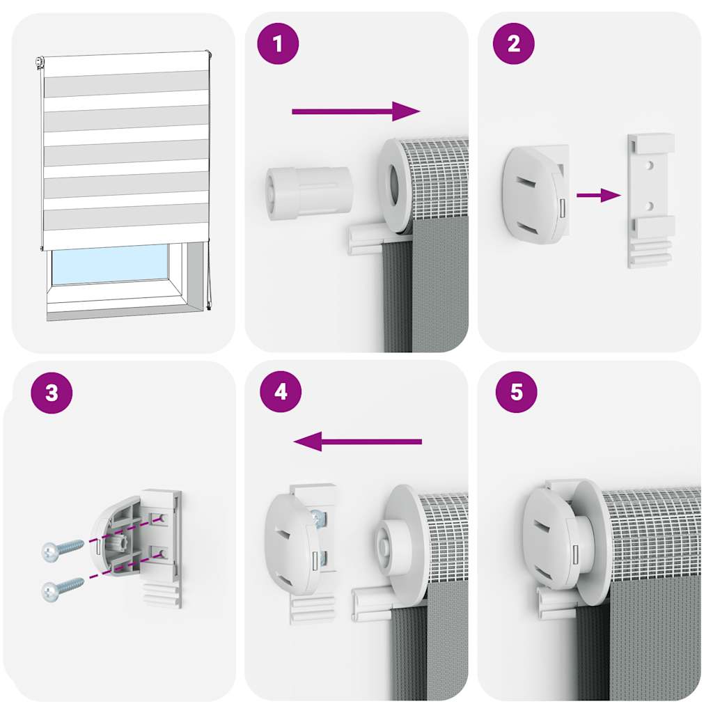 • Kaksi asennustapaa: Voit kiinnittää seepra-rullakaihtimen seinään tai ikkunaan ruuveilla tai ilman porausta kiinnityskannattimilla, tarpeidesi mukaan.