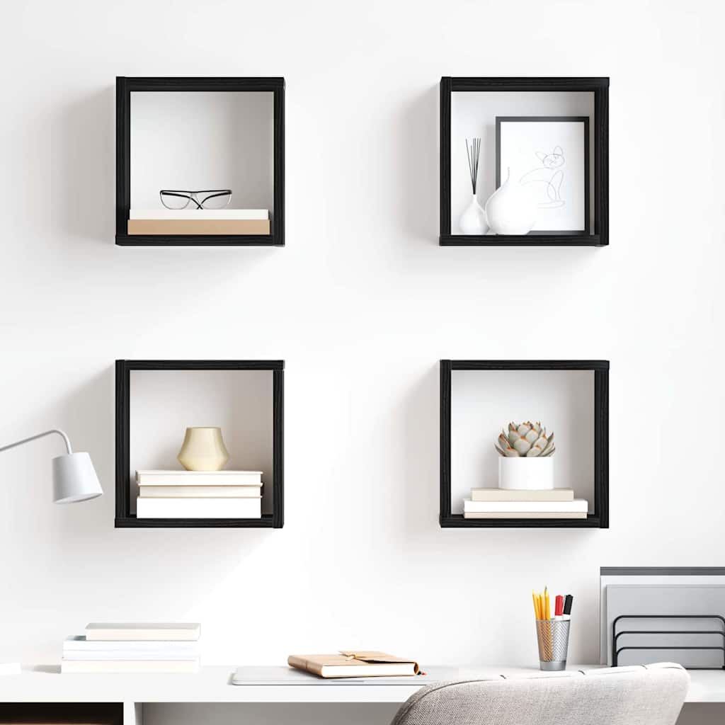 Tämä seinään kiinnitettävien hyllyjen setti yhdistää sekä tyyliä että toimivuutta, tarjoten huikean tavan pitää tilat siistinä. Tyylikäs musta tammi tekee niistä loistavat koriste-esineiden, kirjojen tai kasvien esittelyyn, tuoden huoneisiin modernia ilmettä.